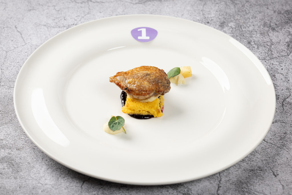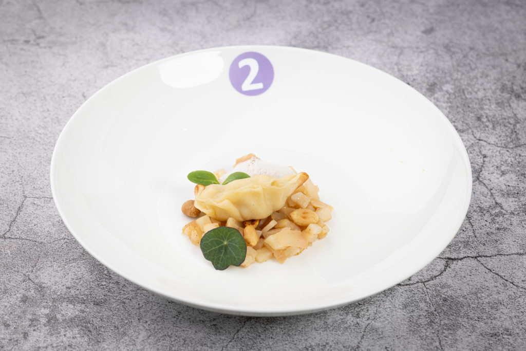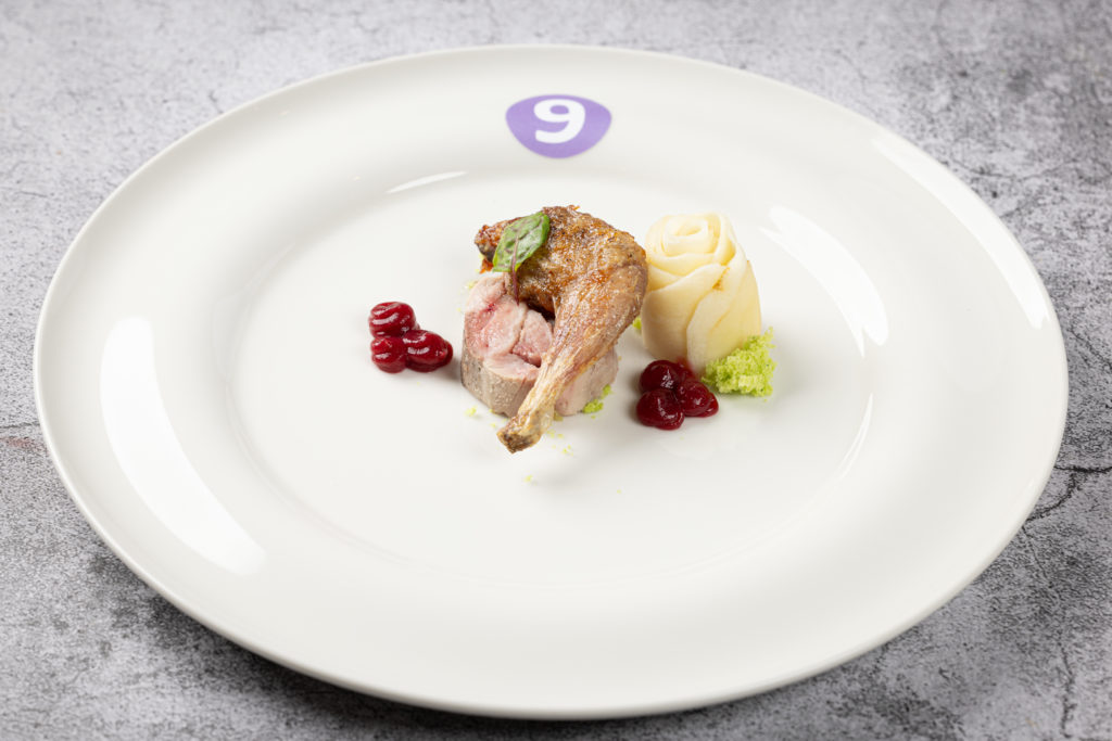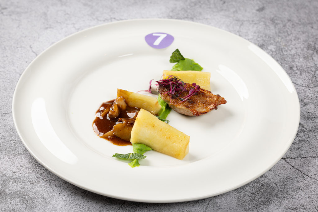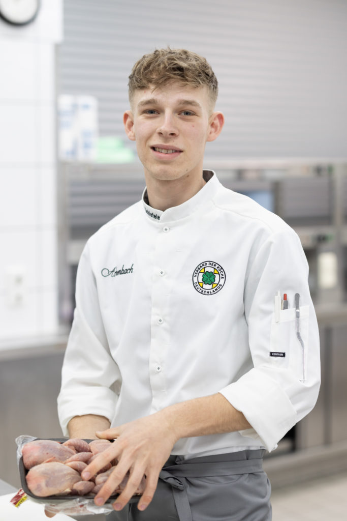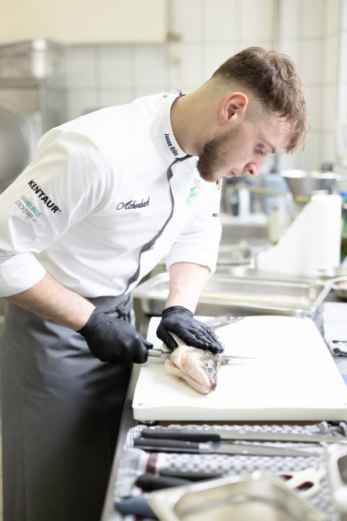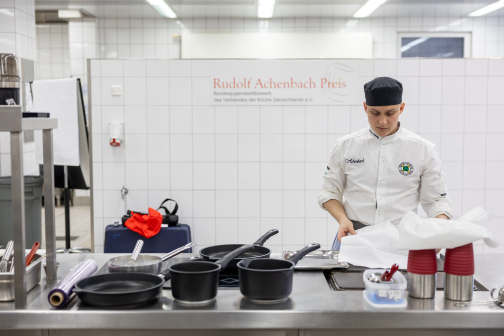 „Ich freue mich sehr, dass ich gewonnen habe. Es war ein cooles Wochenende, ein spannender Wettbewerb und ein tolles Miteinander mit den anderen Finalistinnen und Finalisten“, sagt Nicolas Schramm. „Ich hatte vorher schon an Wettbewerben teilgenommen. Für das Finale des Rudolf Achenbach Preis habe ich einige Trainings mit dem Kochklub Gastronom Hamburg absolviert und privat Ideen gesammelt und recherchiert.“ Vorbereitet in die Endrunde starten ist sinnvoll, denn: Der Wettbewerb hat es in sich. Zunächst standen Theorie und Warenkennung auf dem Programm. Hier mussten die neun Kochauszubildenden im letzten Lehrjahr von Kichererbsen bis zur tropischen Pflanze Rambutan verschiedene Lebensmittel erkennen und korrekt benennen.