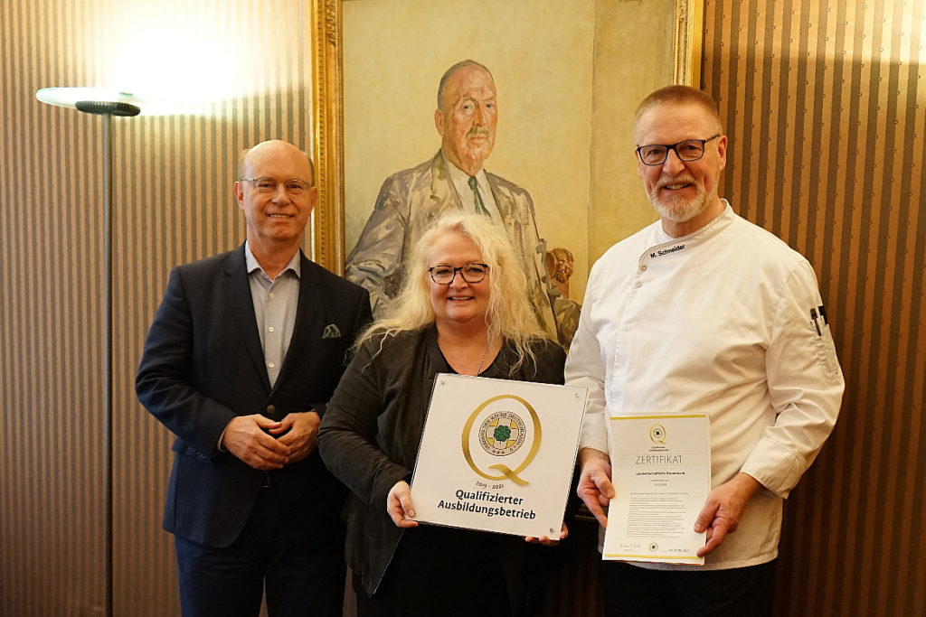 Auch wenn die Gastronomie-Branche gerade fest im Griff der Corona-Krise ist, darf die Ausbildung des Köchenachwuchs nicht auf der Strecke bleiben. Für viele Azubis, deren Betriebe nicht von der Betriebsschließung betroffen waren, wie zum Beispiel Krankenhäuser oder Altenheime, ging die Ausbildung während Corona regulär weiter. Und auch für Auszubildende in Hotelküchen und Restaurants ist die Fortsetzung ihrer Ausbildung essenziell. Mit dem Siegel „Qualifizierter Ausbildungsbetrieb“ zeigen Betriebe, dass sie die Anforderungen an eine gute Ausbildung, eine gute Arbeitsumgebung und eine gute Unterstützung des Auszubildenden erfüllen – auch im Angesicht von Krisenzeiten. Insgesamt acht Betriebe wurden im ersten Quartal 2020 vom VKD ausgezeichnet. Mit dabei waren erneut Betriebe der GDA (Gesellschaft für Dienste im Alter mbH).