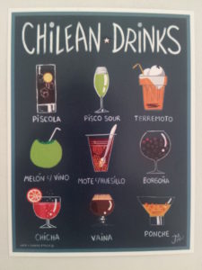 Fehlen zum Ende noch ein paar der zahlreichen typischen Getränke. Wie schon eingangs erwähnt baut Chile in seinen Tälern edle Tropfen Wein an. Die Weltproduktion der Rebsorte Carménère wird zu 80 Prozent dort hergestellt, und eine Weinverkostung sollte man mit auf seine Reiseliste nehmen. Der Wein findet Verwendung in den erfrischenden Getränken Borgoña (Rotwein mit Erdbeeren/Früchten) oder dem Terremoto (dt. Erdbeben), Weißwein mit Ananas-Eis, Likör und Grenadine. Der hochprozentige Pisco wird zu großen Teilen im Valle del Elqui hergestellt. Bis heute streitet sich Chile mit seinem Nachbarland Peru über dessen Herkunft. Bekannte Cocktails aus Pisco sind der Pisco Sour und die Piscola. In den Straßen von Santiago sieht man oft Stände, die einem Mote con huesillo anbieten. Das ist ein karamellisierter Pfirsichsaft, der mit der Frucht und Weizengraupen serviert wird. Viele Bierbrauereien im Süden brauen nach dem deutschen Reinheitsgebot und von den Engländern haben die Chilenen den Fünf-Uhr-Tee übernommen. Allerdings heißt er hier Tomar Once und wird erst gegen 18/19 Uhr eingenommen.
