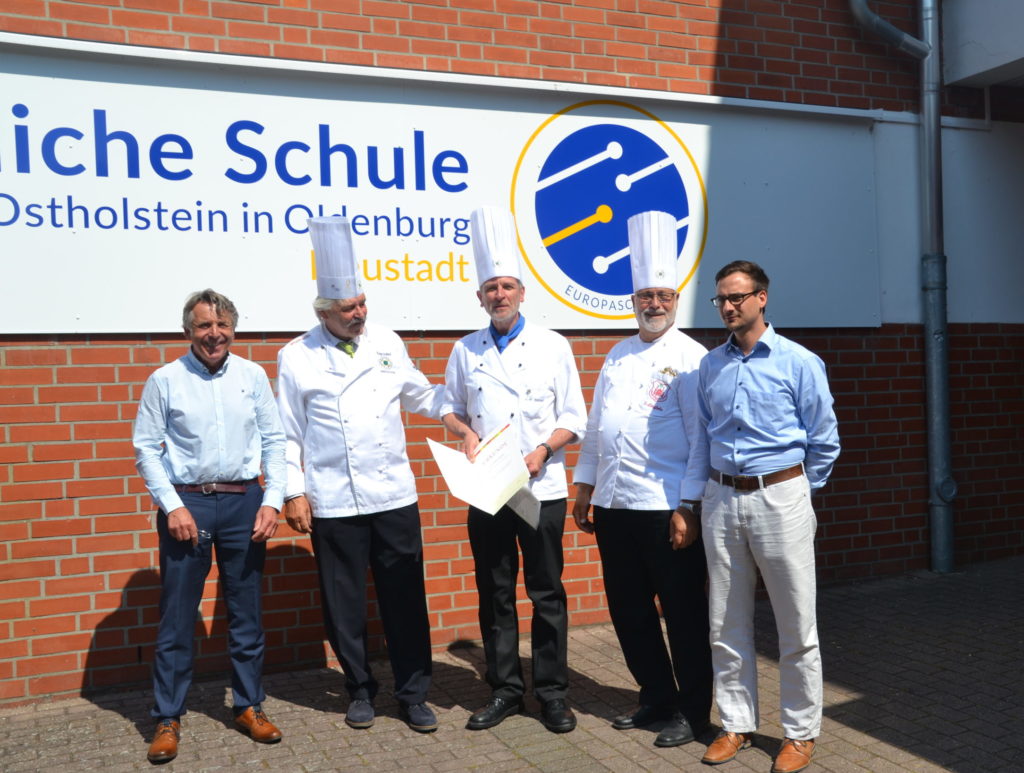 VKD-Vizepräsident Johann Grassmugg und der erste Vorsitzende des Vereins Lübecker Köche, Uwe Langbehn, ehrten Ende Juni den Küchenmeister und Gewerbeschullehrer Jens Peter Möller für 40 Jahre Mitgliedschaft im Verband der Köche Deutschlands. Bei bestem Wetter waren dabei auch Oberstudienrat Dieter Jahnke und Studienrat Nils Lauterbach. Dem Jubilar wurden die Ehrenurkunde und Ehrennadel des VKD überreicht.