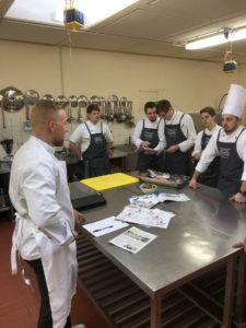 Am dritten Tag stand ein weiteres Mal Fisch auf dem Lehrplan – diesmal präsentiert vom ehemaligen Teamkapitän der deutschen Köche-Jugendnationalmannschaft des VKD, Nils Hansen. Dafür wurden Skrei, Doraden und Wolfsbarsch filetiert und fachgerecht zubereitet. Außerdem gab Nils Hansen den Azubis wertvolle Tipps für ihre berufliche Karriere. Der selbst erst 23-Jährige hat schon viele Wettbewerbe gewonnen und setzt seine Kariere in dem elterlichen Hotel fort. Zum Schluss gab Nils Hansen den Auszubildenden noch einen letzten Tipp für die Prüfungen mit auf den Weg: „Denkt immer an Sauberkeit. Wenn ihr den Arbeitsplatz verlasst, verlasst ihn sauber. Das sind geschenkte Punkte!“