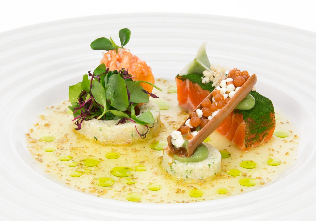 Cured Sea Trout with Kohlrabi Puree and Horseradish,