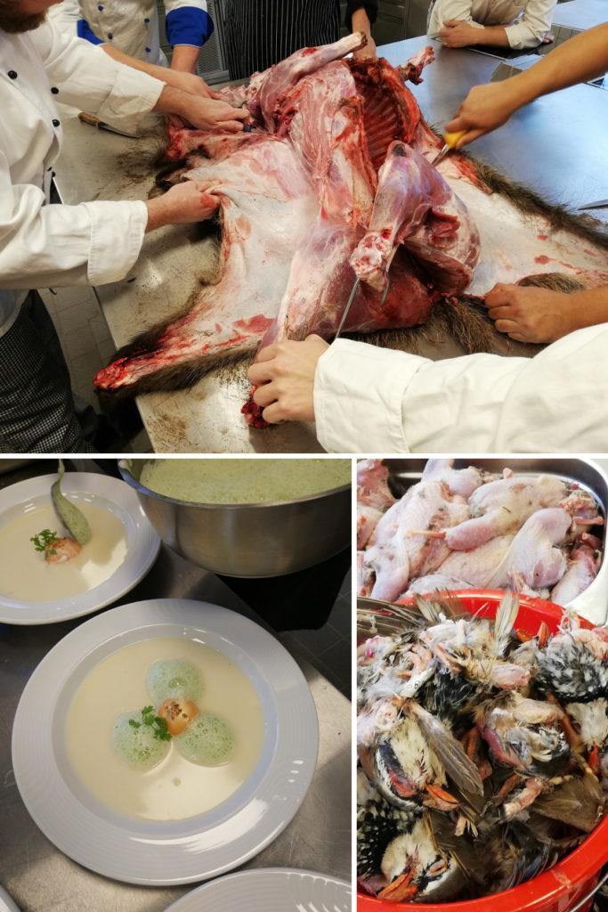 Last but not least sind das klassische Kochen sowie Themen wie Regionalität und Saisonalität von Bedeutung: „Wir möchten den Blick auf das Kochen als ganzheitliche Aufgabe stärken, beispielsweise im Bereich Ressourcenschonung, Nachhaltigkeit, Integration unterschiedlicher Gäste, Abfallvermeidung oder bei Spendenaktionen“, sagt Lore Bankowsky-Pötz über einen der Schwerpunkte ihrer Abteilung. „Ganz aktuell hat beispielsweise ein Kollege, der Jäger ist, mit Koch-Azubis im dritten Ausbildungsjahr ein frisch erlegtes Wildschwein zerlegt und verarbeitet.“ Viel mehr Küchenpraxis geht nicht.