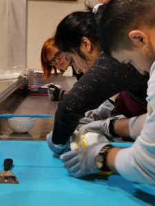 Begrüßt wurden sie von Peter Stöpel, Gründer und Betreiber des Unternehmens. Danach durfte der Köchenachwuchs über Farben, Aromen und Motive der Bonbons entscheiden, die sie später gemeinsam zubereiten würden. Dabei verwendeten sie unter anderem Kurkuma, rote Bete und den natürlichen Farbstoff der Blaualge sowie Zitronensäure.