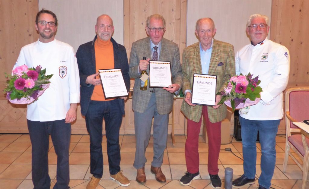 Der Köcheclub Münsterland e. V. hat im Rahmen seiner Generalversammlung Ende Oktober im Gasthaus Stevertal in Nottulen sechs seiner Mitglieder in Anerkennung an ihre Verdienste um den Berufsstand zu Ehrenmitgliedern des Vereins ernannt: Theo Wilmink, Otto Löffken, Hermann Micklinghoff, Holger Wegmann, Norbert Konsorski und Ulrike Knepper. Alle sechs gehören zu den Gründungsmitgliedern des Köcheclubs. Zur Erhebung in den Ehrenstand anwesend war neben dem ersten Vorsitzenden des Vereins, Florian Müller, auch Jürgen Rabe, Vorsitzender des VKD-Landesverbands NRW.