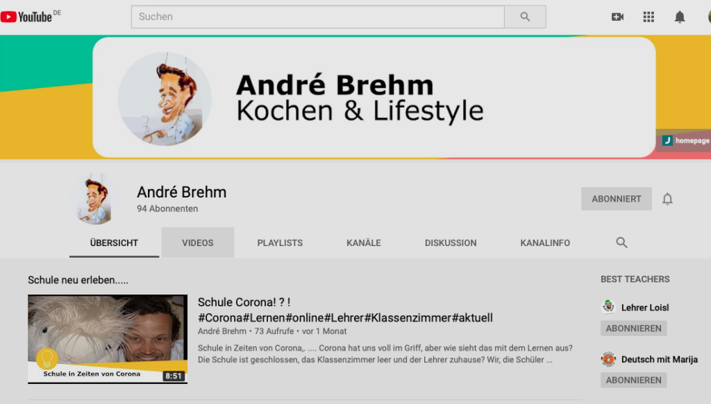 Als die Corona-Pandemie ausbrach, suchte André Brehm nach Lösungen. Der Mannheimer Fachlehrer sendete kurzerhand auf seinem YouTube-Kanal die erste Folge von „Schule in Zeiten von Corona“. „Corona wird uns nicht dazu zwingen, den Unterricht ausfallen zu lassen“, betonte er in seinem ersten Online-Statement am 19. März. „Was uns heute hilft, ist die Technik und die werden wir jetzt auch nutzen.“ Brehm setzte auf lebhaften, lustigen und kurzweiligen Schulunterricht aus der eigenen Küche. Es gab Rezepte, gemeinsame Koch-Sessions – und die Herausforderung, stets eine stabile Internetverbindung zu bieten. Mit der Schulöffnung in Mannheim änderte der engagierte Lehrer Anfang Mai das Format und zeigt nun bis auf Weiteres immer montags ab 6 Uhr in seiner wöchentlichen Sendung, wie die Schule „mit“ Corona aussieht.