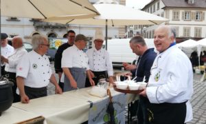 Außerdem schälten die Köche wieder Spargel für den guten Zweck. Markbesucher konnten Spargel auf dem Markt kaufen und dann gegen eine Spende von den Südpfälzern schälen lassen. Insgesamt 750 Euro kamen so zusammen, die an die „Kinder- und Jugendfarm“ in Landau gespendet werden.