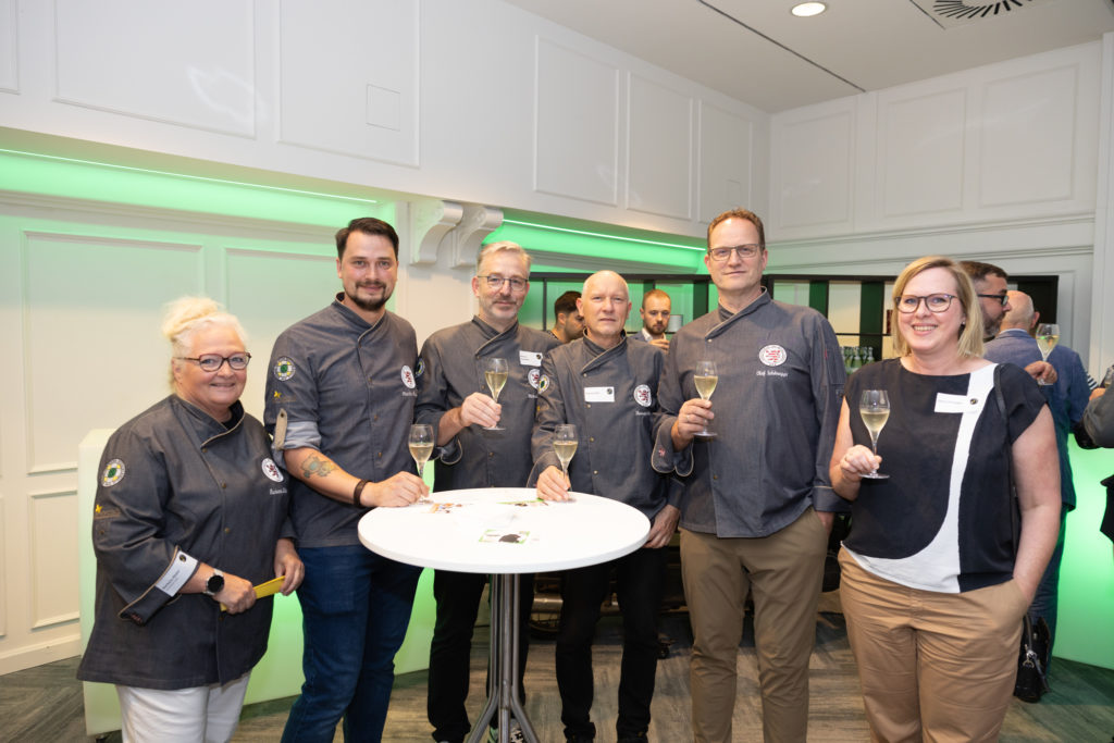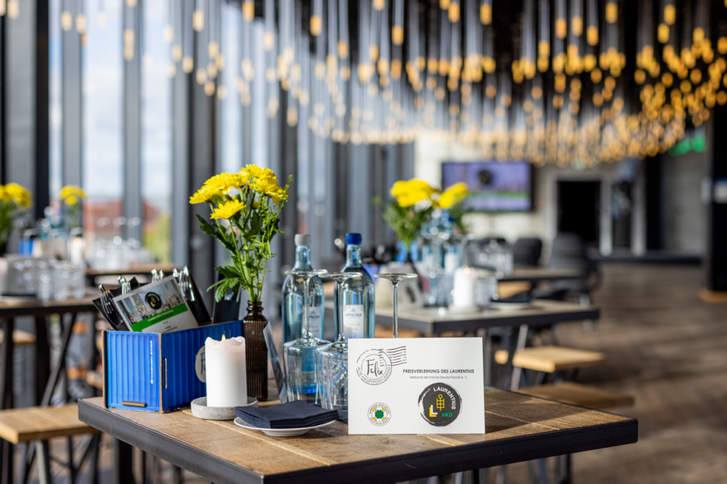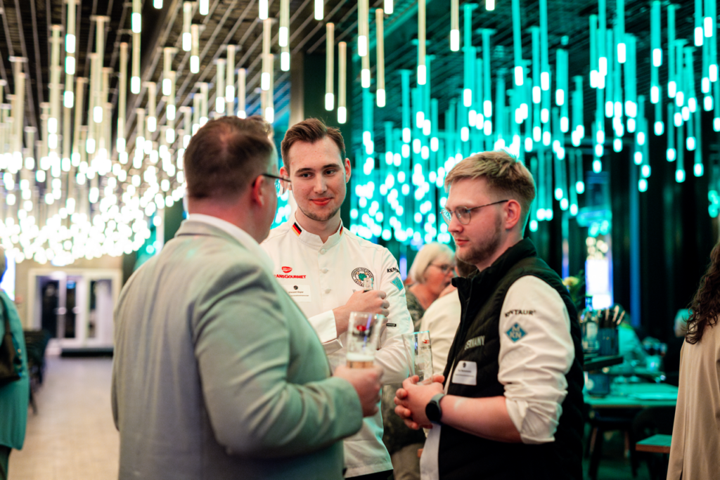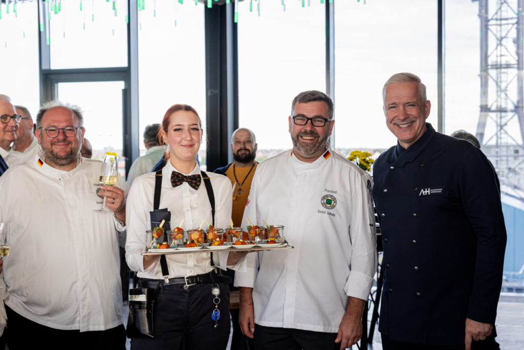 Ein spektakulärer Ausblick auf die Lichter von Leipzig und die Kochausbildung im Rampenlicht: Am Sonntag, 29. September 2024, waren rund 100 Gäste im „Felix“ dabei, als der VKD den diesjährigen Laurentius verlieh. „Wir verstehen diesen Award als ein Zeichen der Wertschätzung für alle, die sich mit Herz und Seele für den Kochberuf und die Ausbildung einsetzen“, sagte VKD-Präsident Daniel Schade. Nach einem inspirierenden Abend inklusive Vortrag von Prof. Dr. Matzerath von der TU Dresden, einem Grußwort der sächsischen Staatsministerin Barbara Klepsch sowie einem Talk mit Sternekoch und Laurentius-Mentor Alexander Herrmann wurden die Preisträger bekannt gegeben. Gewinner des Laurentius 2024 sind (von links) Marvin Luft von der GDA Schwiecheldthaus in Goslar, Marian Schneider von gastroevents in Ulm, Klaus Hassenpflug vom Swiss Life AG Casino in Garching und Rolf Straubinger vom Burghotel und Restaurant Staufeneck in Salach
