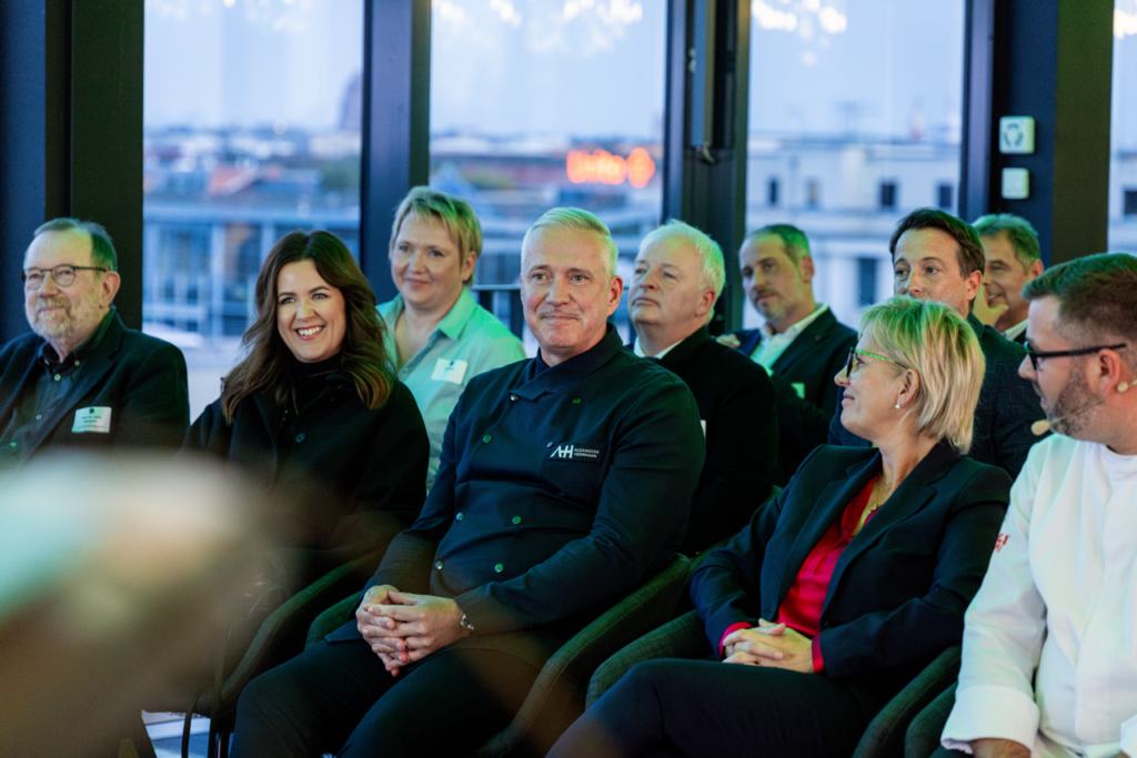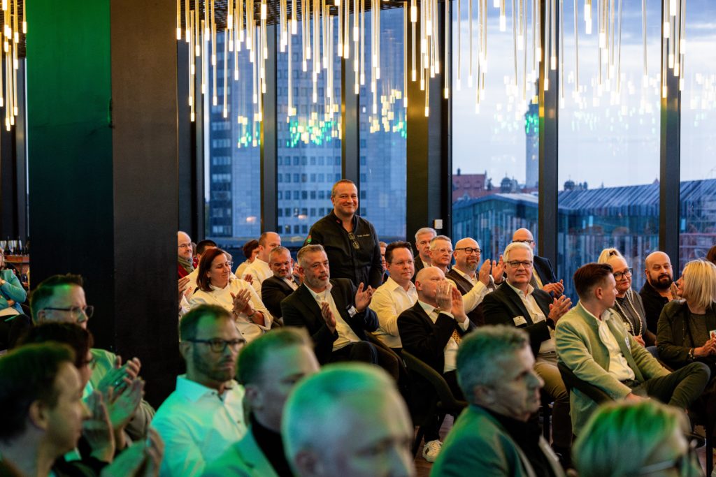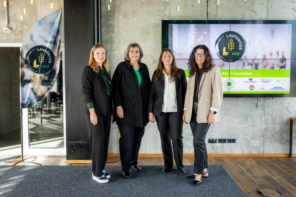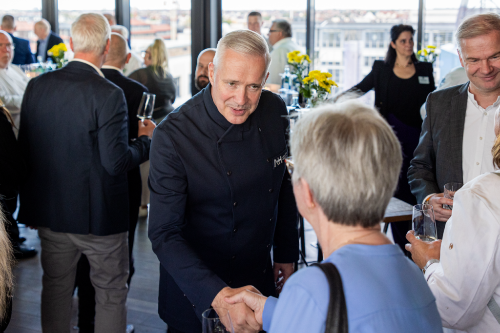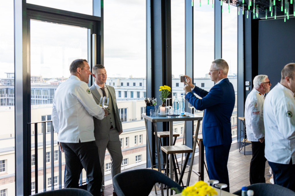Ein spektakulärer Ausblick auf die Lichter von Leipzig und die Kochausbildung im Rampenlicht: Am Sonntag, 29. September 2024, waren rund 100 Gäste im „Felix“ dabei, als der VKD den diesjährigen Laurentius verlieh. „Wir verstehen diesen Award als ein Zeichen der Wertschätzung für alle, die sich mit Herz und Seele für den Kochberuf und die Ausbildung einsetzen“, sagte VKD-Präsident Daniel Schade. Nach einem inspirierenden Abend inklusive Vortrag von Prof. Dr. Matzerath von der TU Dresden, einem Grußwort der sächsischen Staatsministerin Barbara Klepsch sowie einem Talk mit Sternekoch und Laurentius-Mentor Alexander Herrmann wurden die Preisträger bekannt gegeben. Gewinner des Laurentius 2024 sind (von links) Marvin Luft von der GDA Schwiecheldthaus in Goslar, Marian Schneider von gastroevents in Ulm, Klaus Hassenpflug vom Swiss Life AG Casino in Garching und Rolf Straubinger vom Burghotel und Restaurant Staufeneck in Salach