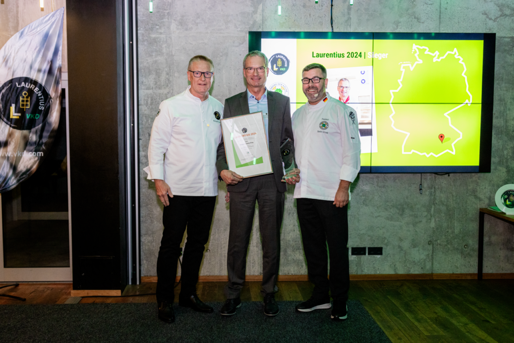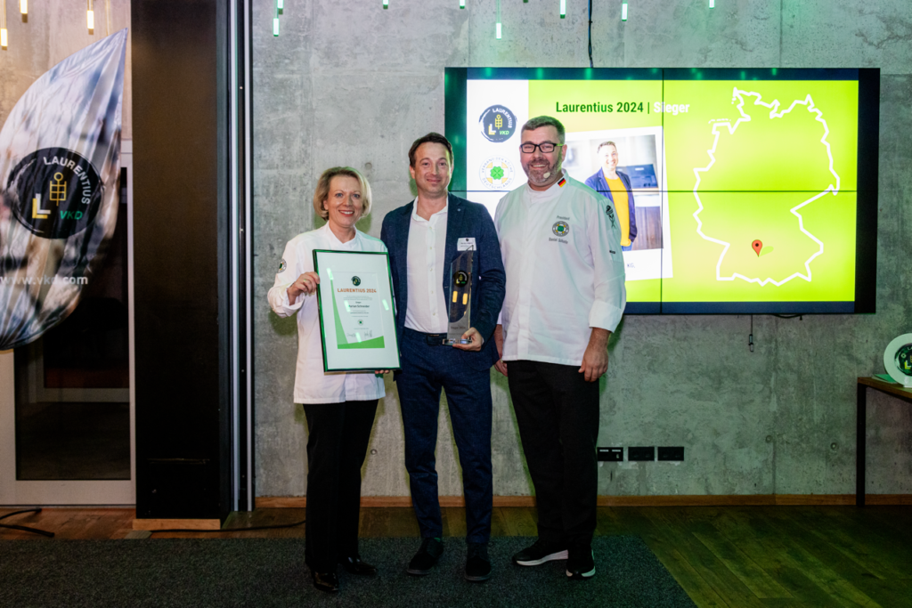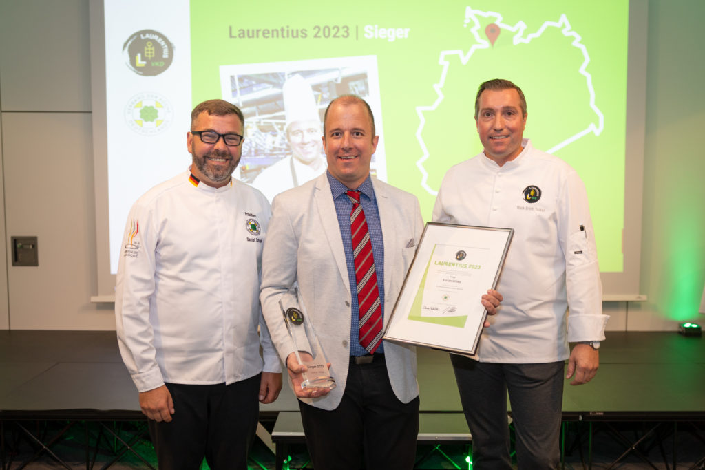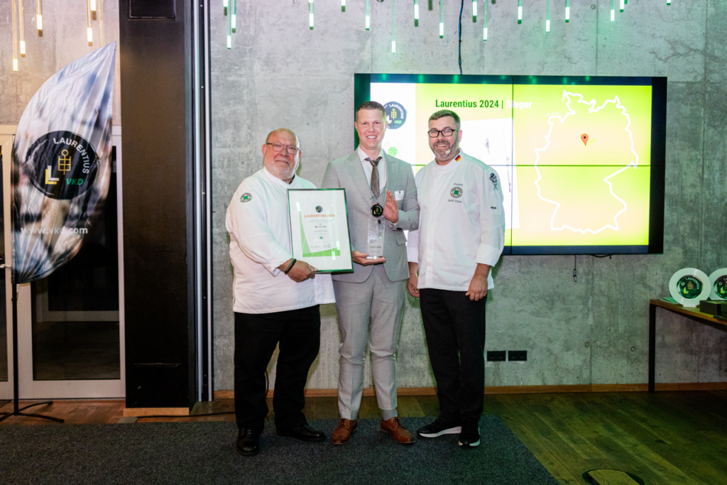 Ein festlicher Abend im Zeichen der Kochausbildung: Am Samstag, den 27. September 2025, versammelten sich mehr als 100 Gäste im Scandic am Museumsufer in Frankfurt am Main, um die Verleihung des diesjährigen Laurentius  mitzuerleben. „Mit dem Laurentius möchten wir ein deutliches Signal setzen: Gute Ausbildung ist das Fundament unserer Branche. Die heutige Feier zeigt, dass wir Menschen haben, die mit Ideenreichtum und Herzblut jungen Talenten Perspektiven eröffnen“, sagte Jury-Vorsitzender Joachim Elflein im Rahmen der Preisverleihung. Unter großem Beifall wurden schließlich die fünf Preisträger bekanntgegeben: Maik Delling vom Schlosscafé in Teningen, Bernd Helm vom Strandhotel Hohenzollern auf Borkum, Sebastian Hölscher vom Dorint Hotel in Frankfurt Oberursel, Frank Müller vom Gasthaus Müller in Barsinghausen und Jesco Schambach vom KWA Stift am Parksee in Unterhaching. Die Gewinner dürfen sich über hochwertige Preise freuen: den Hauptgewinn, eine kulinarische Reise an den Bodensee, ermöglicht von VKD-Goldsponsor Hügli, Weiterbildungsgutscheine im Wert von jeweils 1.000 Euro von der Deutschen Hotelakademie (DHA) sowie die Teilnahme an einem exklusiven Gewürzseminar von Wiberg. Ergänzt wird das Paket durch eine Urkunde, einen Pokal und eine Kochjacke.