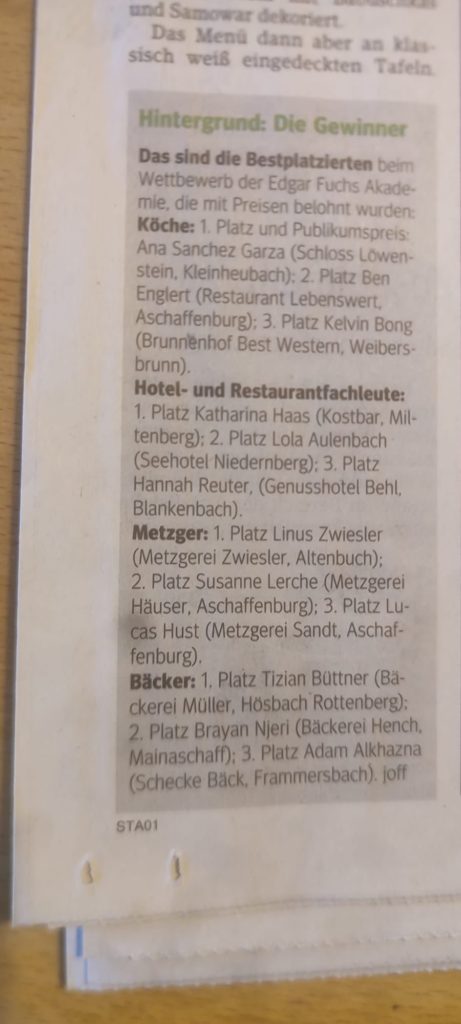 Die Veranstaltung in der Berufsschule Aschaffenburg lockte zahlreiche Fachleute sowie Feinschmecker an, die sich an einem abwechslungsreichen Mittagsprogramm erfreuen konnten. Der Edgar Fuchs Award 2025 setzte damit erneut ein starkes Zeichen für Exzellenz und Innovationskraft in der regionalen Gastronomieszene.