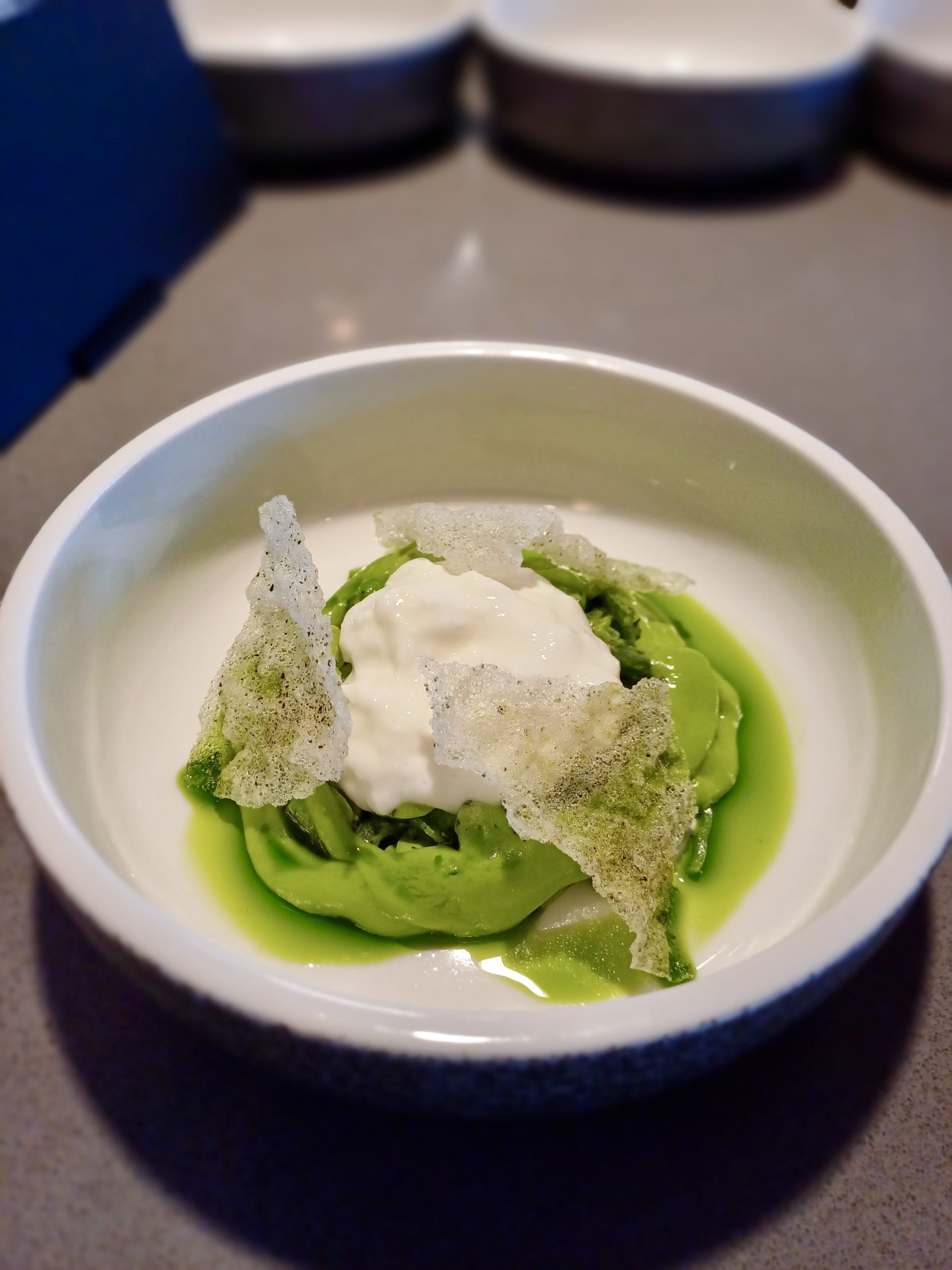 Sellerie | Scamorza | Preiselbeer-Gel | Eingelegte Gurke | Grüner Spargel