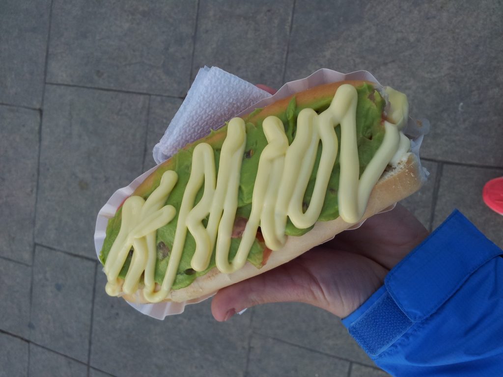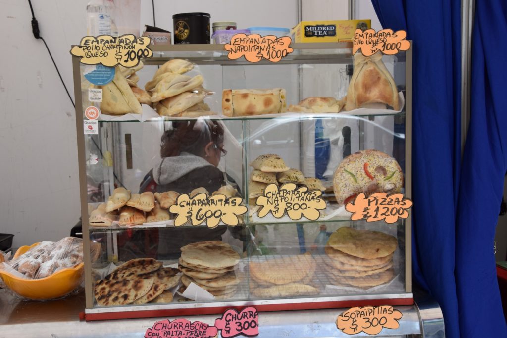 Allen Schnellimbissgerichten voran steht der Completo, ein Hot-Dog mit Tomaten, Avocadocreme und Mayonnaise, teilweise auch mit Sauerkraut. Die Empanadas chilenas sind meist mit Hackfleisch gefüllt, werden aber auch oft mit Meeresfrüchten angeboten. Sopaipillas wiederum sind herzhafte frittierte Kürbisgebäcke, die z .B. mit Pebre und verschieden Saucen als Happen zwischendurch den Hunger am Straßenrand stillen. Aus der süßen Ecke stammen die Leche asada, ein Karamellflan, oder die Leche nevada, Meringue in Vanillesauce.
