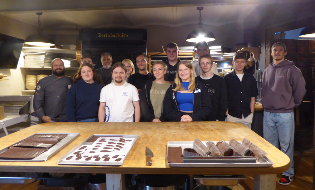 Nach einem gemeinsamen Frühstück startete der zweite Camp-Tag mit einem Besuch der Kelterei Krämer und der Apfelweinmanufaktur „Bembel with care“ in Reichelsheim. Auf dem Programm stand eine Tour durch die Produktions- und Abfüllstätten sowie eine Verkostung der Produkte. Anschließend ging es weiter nach Michelstadt in das Berufliche Schulzentrum Odenwaldkreis (BSO), wo die Teilnehmenden unter Anleitung von VKD-Mitglied Michael Schneider, Küchendirektor der Landwirtschaftlichen Rentenbank in Frankfurt am Main, gemeinsam ein Prüfungsmenü zubereiteten – und nach dem Kochen auch verzehrten. Hierbei wurden auch die am Vortag gefangenen Lachsforellen verarbeitet. Am dritten Camp-Tag wurde es süß. Im Heppenheimer Dessert-Restaurant Muse Chocolat nahm Konditormeister Detlef Dörsam die Teilnehmenden mit auf eine Reise in die Welt der Schokolade. Vom richtigen Temperieren bis zur Fertigung von Dekorelementen für Desserts wurde ihnen hier in einer kurzweiligen Schulung viel Fachwissen vermittelt. Am Nachmittag ging es weiter zur Bergsträßer Winzergenossenschaft. Dort stand eine Besichtigung mit anschließender Weinprobe auf dem Programm. Der letzte gemeinsame Tag endete mit einem Grillabend des Vereins der Köche Starkenburg, bevor es am nächsten Morgen dann Abschied nehmen hieß. Vier spannende und erlebnisreiche Tage gingen zu Ende mit dem Versprechen, wiederzukommen.
