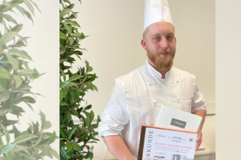 Seine Kochausbildung absolviert Jonas Lange im Hotel Ambiente in Bückeburg. In Zukunft möchte der Achenbach-Finalist vom VKD-Landesverband Niedersachsen am liebsten in der Sternegastronomie arbeiten. Er findet, dass Kochen letztendlich vor allem Spaß machen sollte.