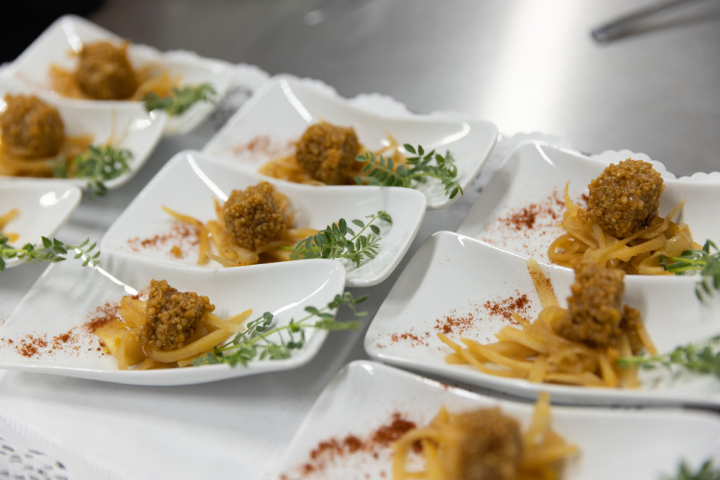 Insgesamt nahmen an dem anspruchsvollen Wettkampf fünf angehende Köchinnen und Köche des zweiten und dritten Ausbildungsjahres teil. Diese hatten sich im Vorfeld durch kreative Rezeptideen qualifiziert. Die besondere Herausforderung für die Wettbewerbsteilnehmer bestand vor allem darin, anhand eines vorgegebenen Warenkorbs mit Pflichtkomponenten sechs verschiedene Fingerfood-Variationen für jeweils 15 Personen zuzubereiten. Die selbst entwickelten Gerichte mussten dafür im Vorfeld genau ausgearbeitet werden, jeder Gang unterlag entsprechenden Kriterien. So waren beispielsweise gesunde Smoothies, aber auch vegane und süße Gänge zu berücksichtigen. Bei der Erstellung des Warenkorbs legte die Wettbewerbsleitung großen Wert auf Bio-Qualität, regionale Produkte und alte Gemüsesorten. Um den vorgeschriebenen finanziellen Rahmen einzuhalten, mussten die Teilnehmerinnen und Teilnehmer die zu erwartenden Kosten exakt kalkulieren.