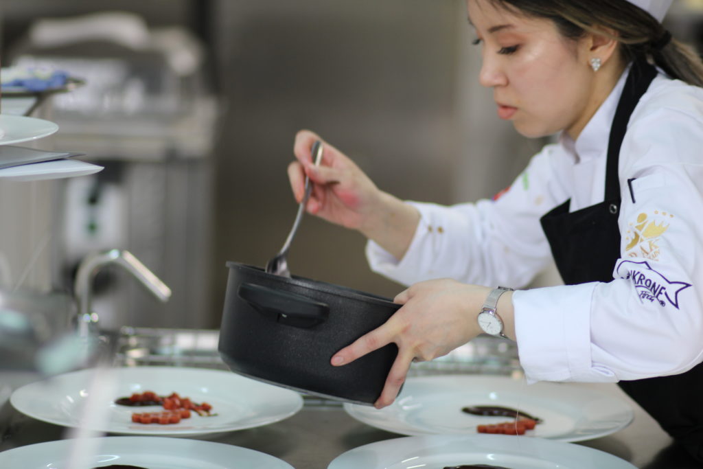 Kampfgeist und Ehrgeiz hatte VKD-Mitglied Tina Võ bereits vor dem Profikochen. Seit 2015 betreibt sie Cheerleading als Leistungssport und nahm sogar an einer Weltmeisterschaft teil. „Ich mochte es schon immer, eine der Besten zu sein oder zumindest darauf hinzuarbeiten. Eine Zeit lang habe ich das Cheerleading aufgegeben und in dieser Zeit meine Passion für Kochwettbewerbe entdeckt“, sagt sie. Aktuell macht sie ihren Cheerleading-Trainerschein. „Dort lerne ich Verantwortung zu übernehmen, was hilfreich sein kann für führende Stellen in der Gastronomie. Ich möchte irgendwann meinen Küchenmeister machen und später im Fine-Dining-Bereich selbstständig sein.“ Seit August ergänzt sie das Team der Hamburger Brasserie Hygge als Chef de Rang. „Wie der Lokalname schon sagt bietet das Restaurant mit Bar eine gemütliche und familiäre Atmosphäre – gepaart mit gehobener kreativer Küche und guten Drinks.“