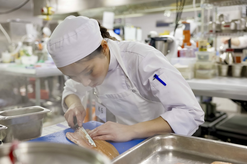 Obwohl Tina Võ durch ihre verkürzte Lehre auf Teile des Blockunterrichts in der Berufsschule verzichtet hat, fiel es ihr nicht schwer, in der Theorie mitzuhalten. Bei der Praxis sah das zunächst anders aus. „Ein Jahr Handwerk kann man nicht so schnell nachholen. Da ich in meinem Betrieb mehr als nur die Basics gelernt habe, ist das dennoch gut gelungen“, sagt sie. „Außerdem bin ich meinem Ausbildungsbetrieb sehr dankbar, dass ich mich auch ,extern‘ weiterbilden durfte.“ Gemeint sind drei Kochwettbewerbe, an denen Tina Võ teilgenommen hat: Helmut-Roock-Pokal, Deutsche Jugendmeisterschaften und National Competition of Young Chefs. „Das waren Highlights in meiner Ausbildung. Eigene Menüs zu kreieren, macht bei Wettbewerben besonders Spaß. Außerdem baut man ein Netzwerk mit anderen Auszubildenden in ganz Deutschland auf und lernt indirekt potenzielle Arbeitgeber kennen“, so die Köchin.