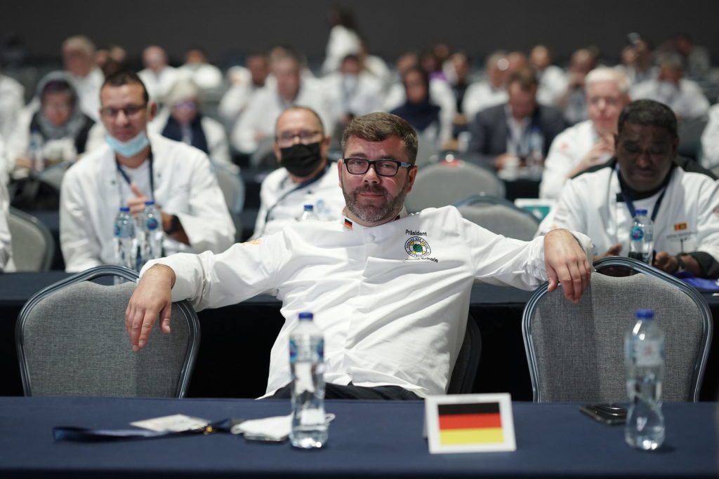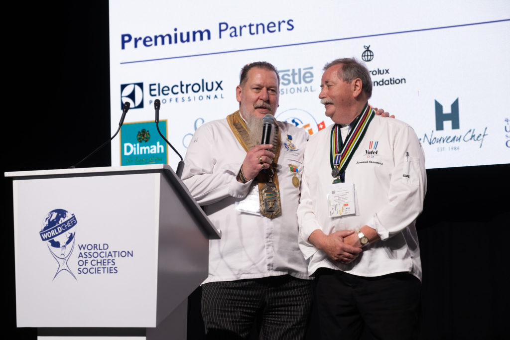Worldchefs-Präsident Thomas Gugler bedankte sich bei allen Teilnehmenden: „Nach fast vier Jahren ist es etwas ganz Besonders, so viele Köchinnen und Köche aus der ganzen Welt persönlich zu treffen. Wir sind stolz darauf, dass so viele von ihnen es trotz all der Schwierigkeiten, die wir immer noch durchmachen, hier sind.“ In Ergänzung zum Branchen-Networking standen auch Ehrungen an. Thomas Gugler überreichte Worldchefs 2022 Awards, Medaillen und Anerkennungen an Mitglieder, Sponsoren und Partner. Armand Steinmetz vom Vatel-Club Luxembourg, Träger des President’s Award, erhielt eine Auszeichnung für sein besonderes Engagement. Außerdem wurde Alain Hostert im Rahmen der Wahlen des Board of Directors erneut zum Continental Director Europe Central gewählt.