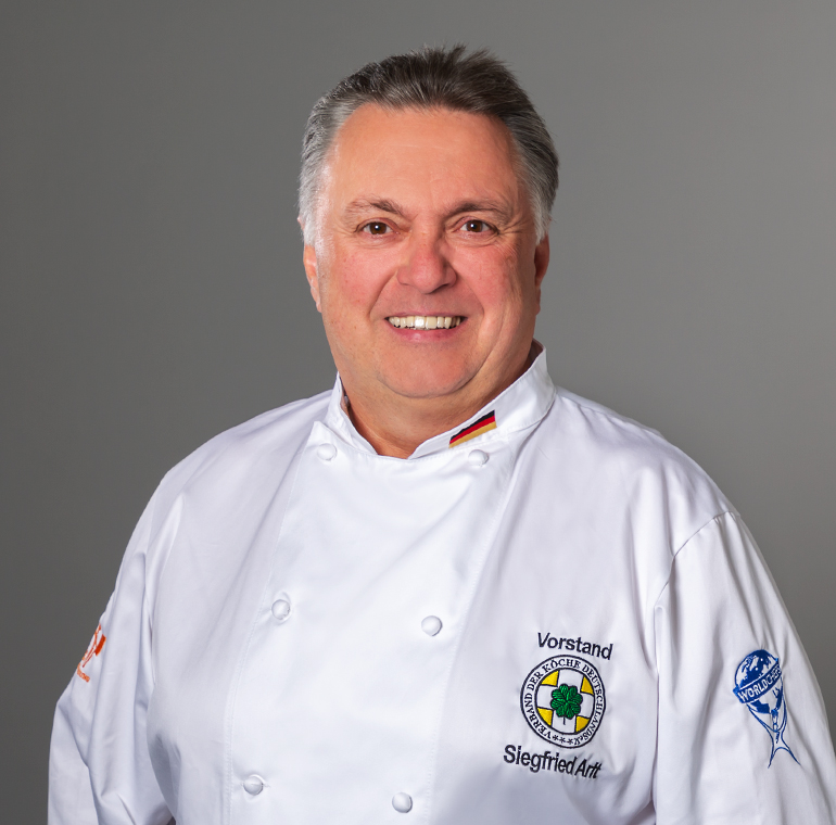 Geboren 1956 in Konradsreuth, absolvierte Siegfried Arlt seine Ausbildung ab 1971 im Romantik Hotel Post in Wirsberg, wo er das das A und O der Basics erlernt hat. Prägende Stationen waren unter anderem das Hotel Bachmair am See in Rottach-Egern – hier war seine erste Station mit großer internationaler Küche. Arlt ist seit 13 Jahren als Küchenmeister in einer Beautyfarm tätig. Durch eine gute Work-Life-Balance bleibt ihm viel Zeit für sein ehrenamtliches Engagement: Er unterstützt die Jugendarbeit im Verein der Köche Tegernseer/Schlierseer Tal und ist seit mehr als 20 Jahren im Verband der Köche Deutschlands Mitglied. Zudem ist er Vorsitzender des Landesverbands der Köche Bayern und somit Teil des VKD-Vorstands.