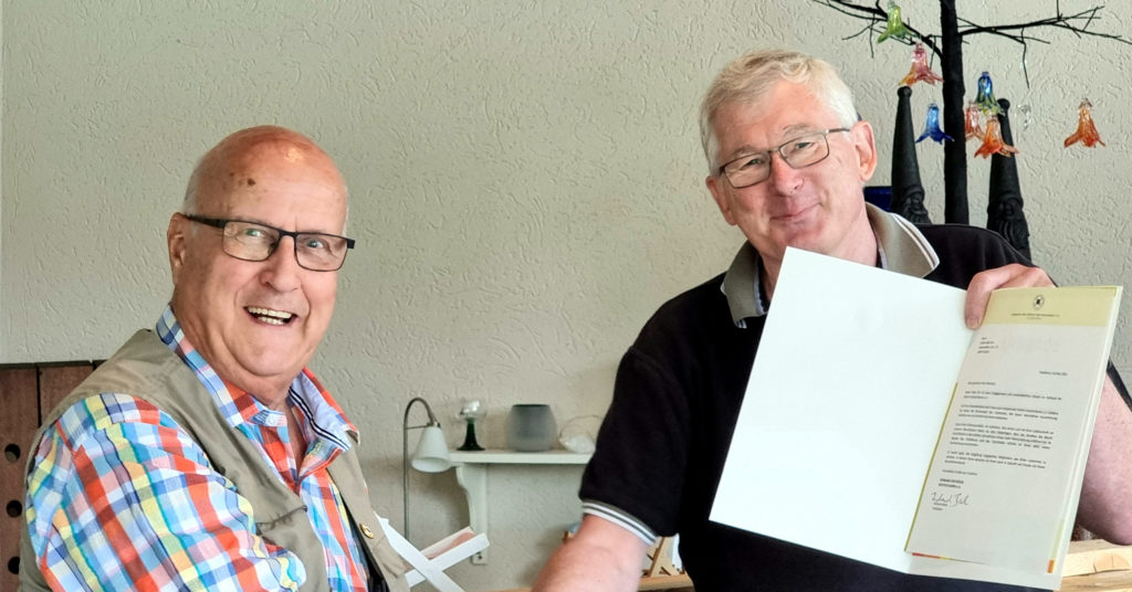 Volker Berrisch (links) wurde für 65 Jahre VKD-Mitgliedschaft von Michael Klutt geehrt. Foto: Weiss