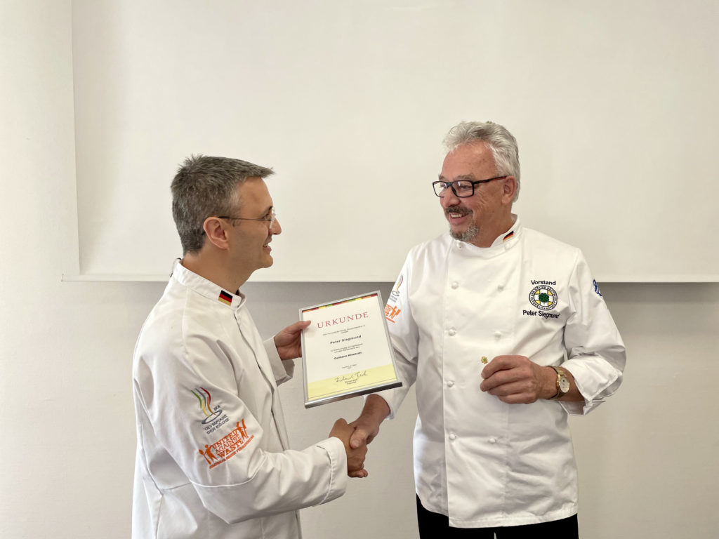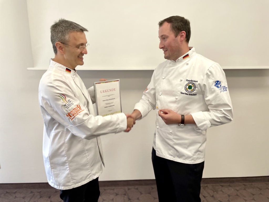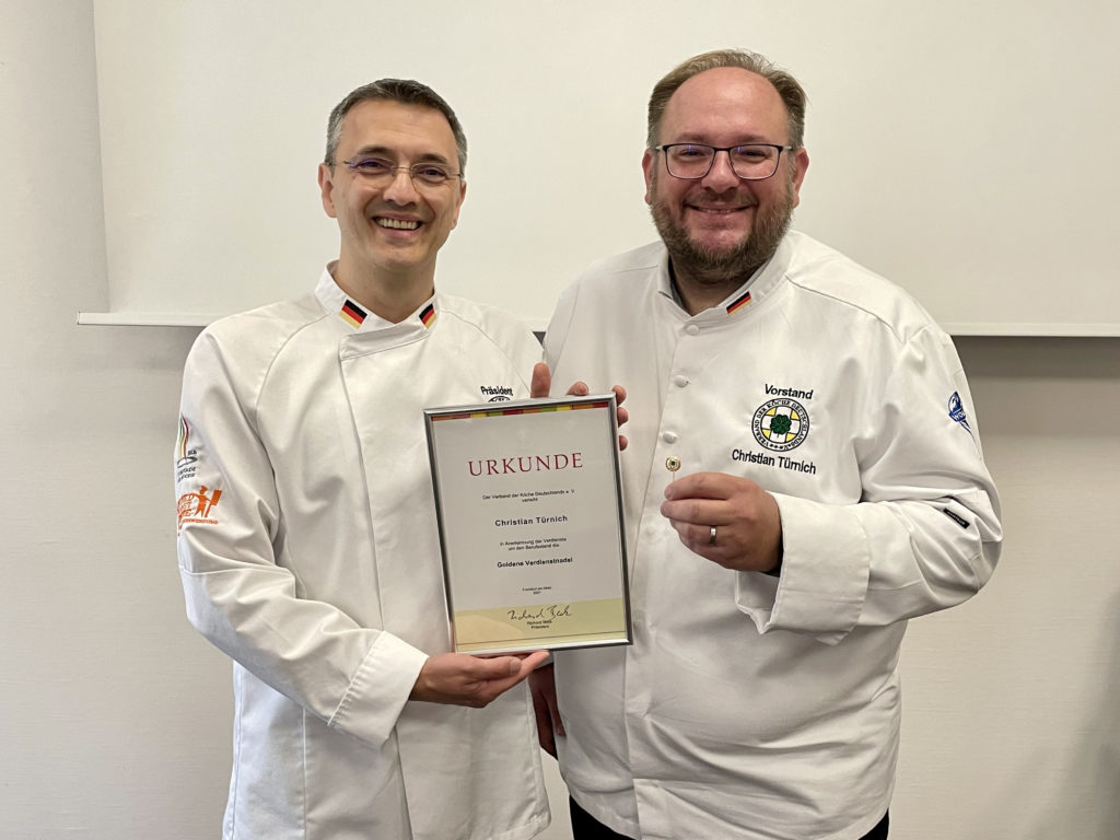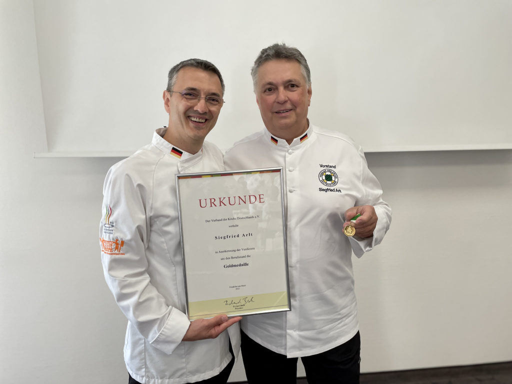 Richard Beck gratulierte Johann Grassmugg zur besonderen Auszeichnung, der Goldmedaille des VKD. Der scheidende Vizepräsident Nord hat sich viele Jahre im Gesamtvorstand des VKD ehrenamtlich eingesetzt. Foto: VKD