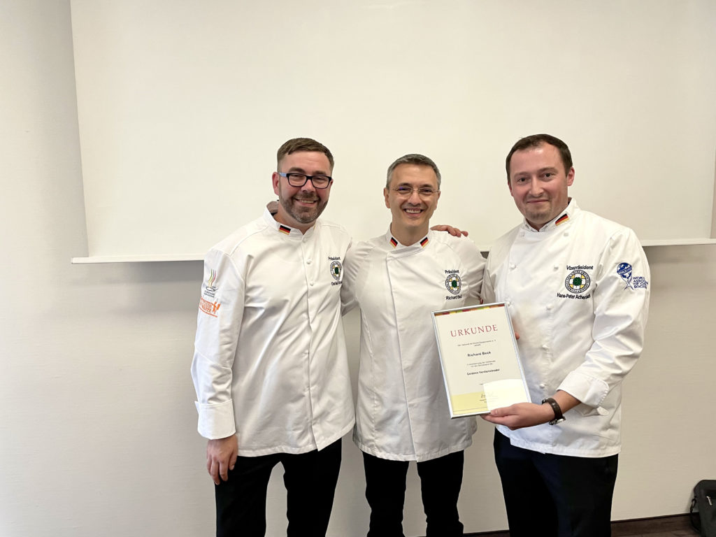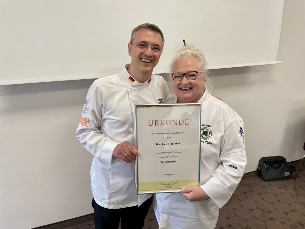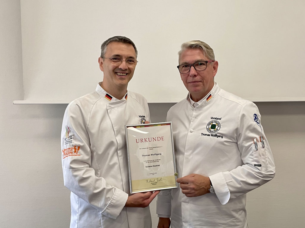 Johann Grassmugg (ehem. Vize Nord), Siegfried Arlt, Vorsitzender des Landesverbands Bayern und Barbara Röder vom Landesverband Hessen erhielten jeweils eine Goldmedaille. „Gemeinsam haben wir das Boot gesteuert und so manches Mal ist uns eine frische Brise ins Gesicht geweht“, sagte Johann Grassmugg im Kreis seiner Kolleg:innen. „Ich bin dankbar, dass ich so viele Jahre im Gesamtvorstand des VKD mitarbeiten konnte, als Team haben wir einiges bewegt. Unseren Nachfolger:innen wünsche ich alles erdenklich Gute, immer eine faire Abstimmung und eine Zusammenarbeit auf Augenhöhe zum Wohl unseres Berufsstands. Wenn wir künftig gebraucht werden, sind wir da und gern bereit, mitzuhelfen und zu unterstützen.“ Außerdem ausgezeichnet wurden Peter Siegmund (ehem. Vorsitzender LV West) und Thomas Wolffgang, Vorsitzender des VKD-Landesverbands Mitteldeutschland, mit dem Goldenen Kleeblatt sowie Richard Beck, Hans-Peter Achenbach (ehem. Vize West), Daniel Schade und Christian Türnich mit der Goldenen Vierdienstnadel.
