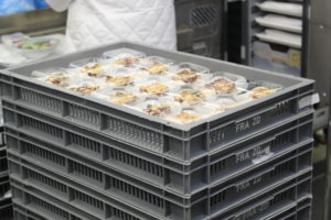 „In Frankfurt gibt es die größte japanische Küche außerhalb Japans.“ Stefan Grammel ist ehemaliger Teilnehmer des Rudolf-Achenbach-Preises und jetzt Director Culinary Excellence Europe bei der LSG Group. Er ist mit seinem 27-köpfigen Entwicklungsteam am Frankfurter Flughafen zuständig für das Essen der Passagiere an Bord der Flugzeuge. Neben der Lufthansa beliefert das Unternehmen alleine an diesem Standort 44 Airlines aus aller Welt. „Viele der Fluggesellschaften kommen aus Asien, deshalb haben wir uns unter anderem auf japanische Küche konzentriert“, sagt Stefan Grammel. Im Vertrag internationaler Airlines sei es oft Vorgabe, dass ein regionaler Koch mitarbeitet. So sei es gekommen, dass mittlerweile auch 16 japanische Köche beschäftigt werden. „Manche von ihnen haben wir direkt aus Japan rekrutiert“, sagt Grammel. Aber nicht nur die Köche kommen direkt aus Japan. „Viele der Produkte, die wir für die japanischen Menüs brauchen, gibt es in Deutschland gar nicht,“ sagt er. Für die Menüs bräuchte sein Team deshalb eine Vorlaufzeit von bis zu drei Monaten. Neben japanischen Gerichten kocht LSG Sky Chefs in Frankfurt für Kunden auch koreanisch, indisch, chinesisch und arabisch.