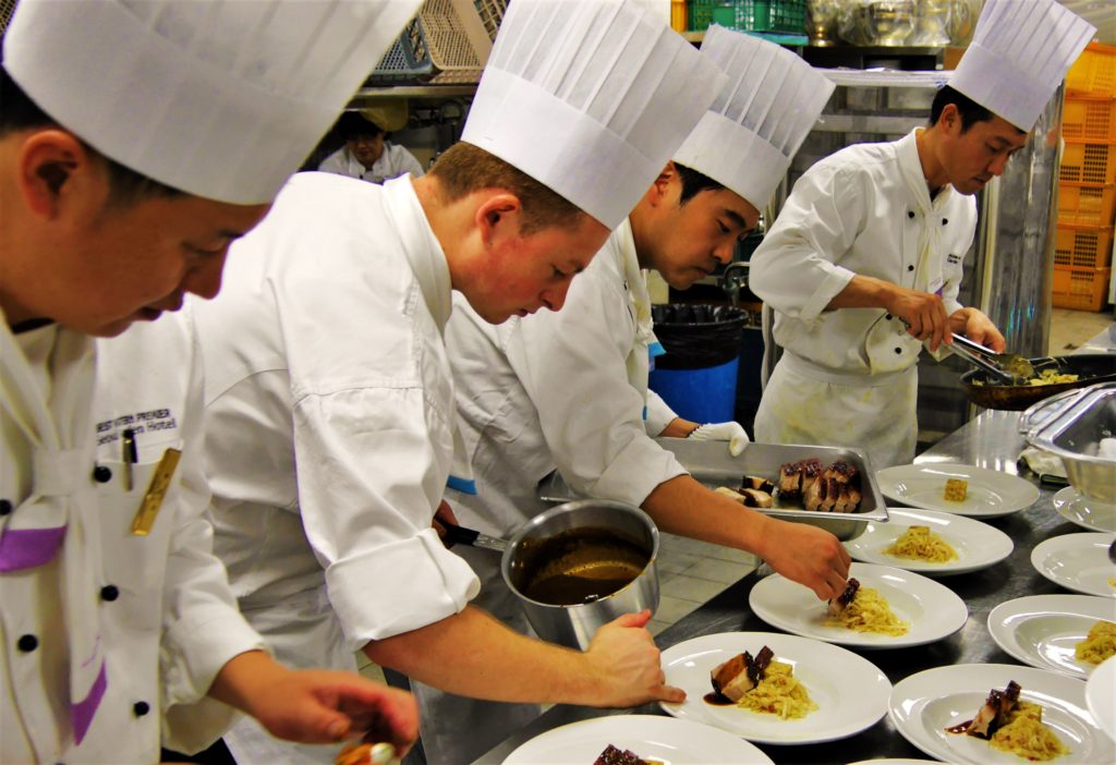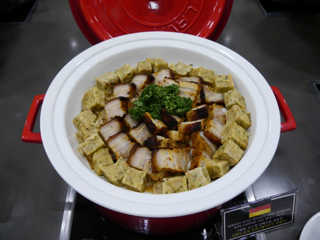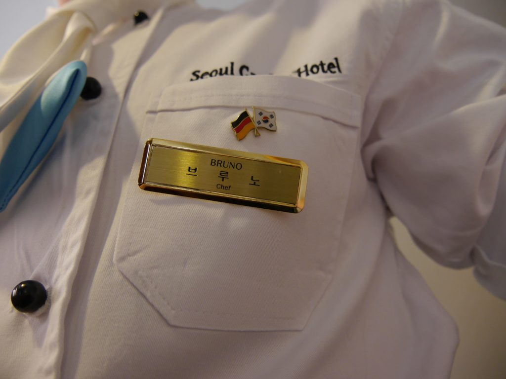 Bruno ist stolz, wenn er von seiner Zeit dort berichtet. Der Küchenchef hatte eigens ein Namensschild für ihn anfertigen lassen, das er ihm am ersten Praktikumstag überreichte. In der modernen Hotelküche – aufgeteilt in vier Bereiche für westliche, chinesische, japanische und koreanische Küche – war Bruno vier Wochen lang Teil eines 30-köpfigen Teams. Gemeinsam bekochten sie Hotelgäste, bereiteten Buffets für Bankette zu – und Bruno durfte auch die deutsche Küche mit einbringen. „Ich habe ein Sechs-Gänge-Menü für den Hotelbesitzer kreiert und zubereitet“, sagt der 27-Jährige. Für den Küchenchef kochte er seine Kreation zu Probe. Und dank einiger Tipps für die Anpassung an den koreanischen Gaumen – die Schwarte soft, die Suppe nicht zu cremig – sei es gut angekommen. Wenngleich Schweinebraten, Knödel und Kraut gewöhnungsbedürftig gewesen seien. Und: „Koreaner kennen zwar Reis, aber Milchreis haben sie noch nie als Dessert gegessen.“ Koreanisch hat er selbstverständlich auch gekocht. Kimchi zum Beispiel ist ein wichtiger Bestandteil der koreanischen Küche. „Wie der Kartoffelsalat im Schwäbischen“.