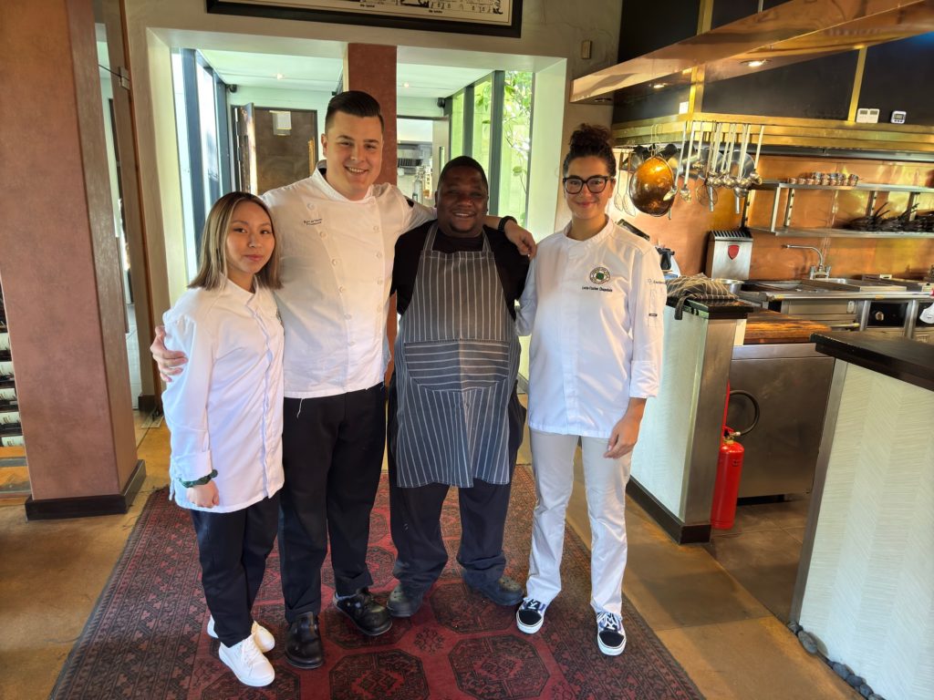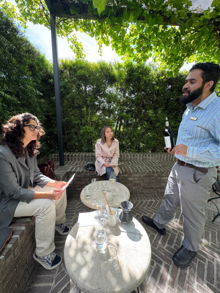Eine ähnliche Ehre wurde Lucie im Rust en Vrede in Stellenbosch zuteil. In der Küche unter Leitung von Fabio Daniel durfte die Deutsch-Französin ein Amuse-Bouche kreieren, das den Gästen serviert wurde und demnächst auf die Speisekarte kommen soll. Das Fine-Dining-Restaurant befindet sich im ursprünglichen Weinkeller des gleichnamigen Weinguts. „Ich habe die südafrikanischen Sorten eindeutig unterschätzt“, zeigt sich Tina begeistert. Mehr als 40 verschiedene Sorten konnten die Köchinnen aus Deutschland während der Reise probieren – bei Mullineux Wines sogar einen Süßwein mit 100 Parker-Punkten. Von Rebsorten bis Bodenvielfalt: Unterfüttert wurden die Kostproben vom Fachwissen verschiedener Sommeliers. „Ich habe noch nie so guten Wein getrunken wie in Südafrika“, resümiert Lucie, die 2025 selbst eine Weiterbildung zur Sommelière machen möchte.