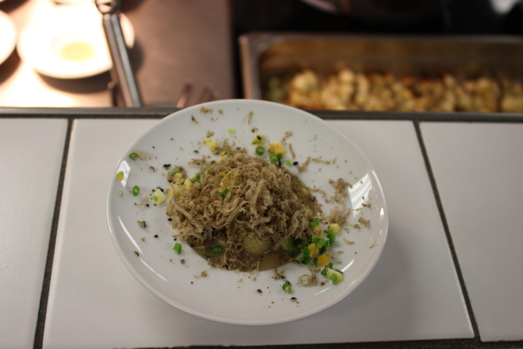 Viele Anregungen und Tipps gab es von den Dozenten, die in der Vergangenheit teilweise auch schon Teilnehmer der Talentschmiede waren. So zum Beispiel auch Robert Stauder, der ein ganzes Reh verarbeitete. Marianus von Hörsten, der zurzeit selbständig ist, kam in der Nacht aus Hamburg angereist. Tobias Laabs, ehemaliger Kapitän der deutschen Köche-Nationalmannschaft, kam aus Berlin. Aus Fellbach reiste Joachim Habiger an. Zusammen mit Philip Saur zeigte er allen Teilnehmern Raffinessen aus der Patisserie.
