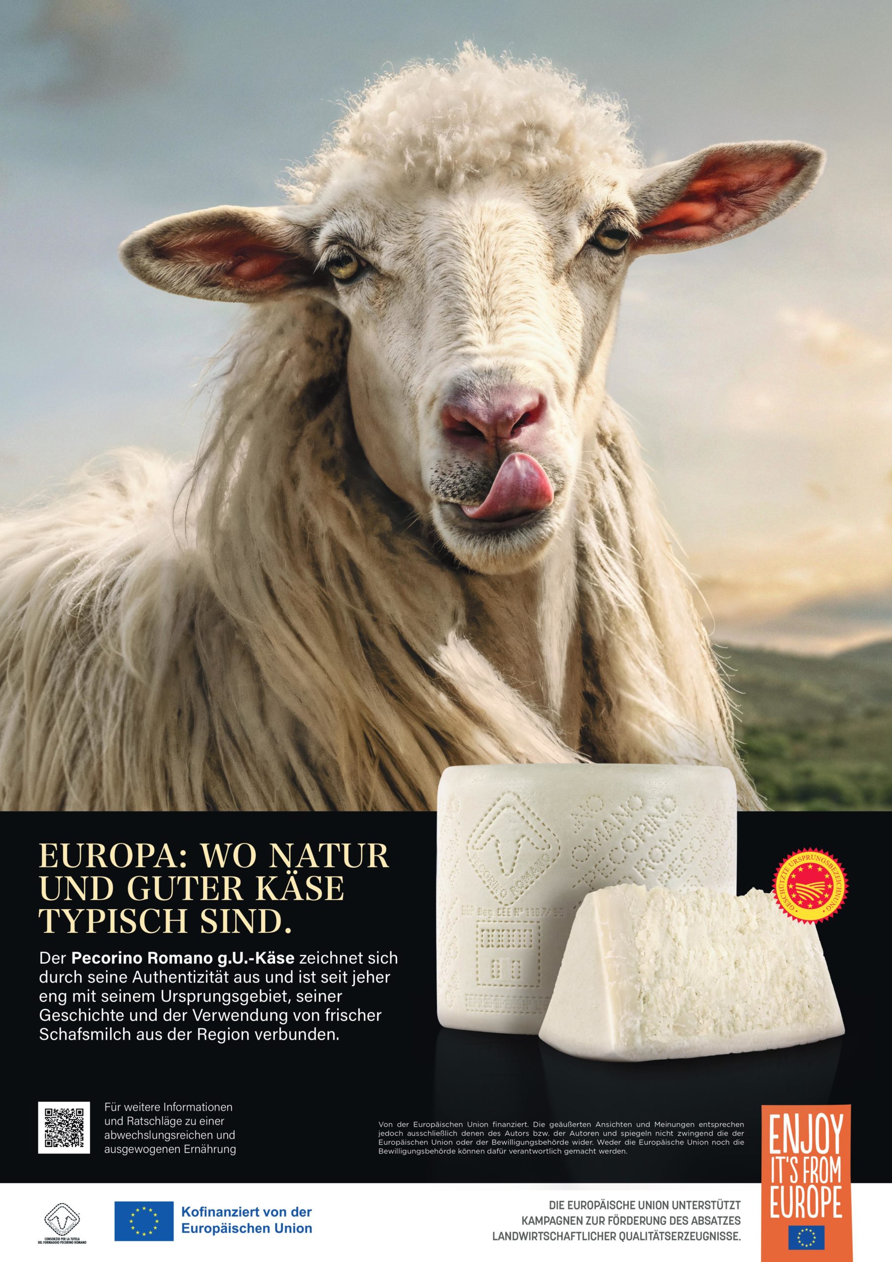 Die Kampagne „Europa: Wo Natur und guter Käse typisch sind“ des italienischen Pecorino Romano DOP Konsortiums (Consorzio di tutela del Pecorino Romano DOP) richtet sich gleichermaßen an Verbraucher, Gastronomen und Fachleute im Handel. Das Ziel ist, die breite Öffentlichkeit über das offizielle EU-Gütesiegel „geschützte Ursprungsbezeichnung“ (g.U.) als Orientierungshilfe für traditionell regionale Produkte aufzuklären. Gleichzeitig soll der Konsum von g.U.-Agrarerzeugnissen aus Europa gefördert werden. Die Produkte mit dem europäischen Siegel g.U. sind streng an ein bestimmtes Herkunftsgebiet gebunden und weisen klar definierte und garantierte Eigenschaften auf. Ein Produkt mit g.U.-Gütesiegel unterscheidet sich wesentlich in Geschmack, Saisonabhängigkeit, Terroir und Produktionsgarantien von anderen landwirtschaftlichen Erzeugnissen. Zudem unterliegen diese strengen Qualitätskontrollen. Die von der Europäischen Union mitfinanzierte Kampagne trägt das europäische Versprechen „Enjoy it’s from Europe“.