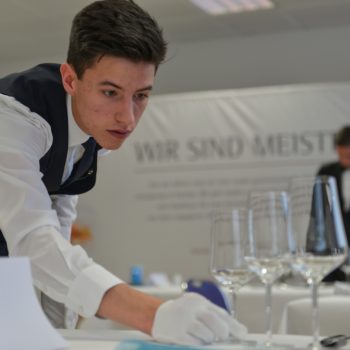 Als Uwe Staiger, 1. Vorsitzender der Meistervereinigung Gastronom e.V., die Zeremonie einleitete und Alexander Munz die Gewinner des Wettbewerbs „Die Besten 10“ auf die Bühne rief, lagen hinter den Auszubildenden bereits über neun Stunden harte Arbeit. In der Landesberufsschule für Hotellerie in Calw starteten die 16 Teilnehmer, acht Koch- und acht Restaurantfach-/Hotelfach-Auszubildende, bereits am frühen Morgen mit ihren Vorbereitungen, stets unter Aufsicht der fachkundigen Jury.
