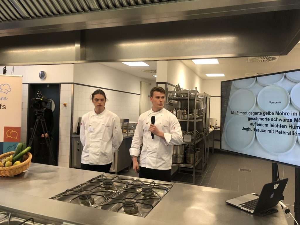Mit 22 Einsendungen ging am 14. September die erste Phase des Kochwettbewerbs zu Ende. Insgesamt acht Azubi-Teams konnten in eigenen Bewerbungsvideos ihre Begeisterung für den Ausbildungsberuf und die Motivation zur Teilnahme am Wettbewerb am eindrucksvollsten unter Beweis stellen. Sie hatten die Videojury am meisten beeindruckt und sich einen Platz in der Endrunde gesichert. Beim Finale am 2. und 3. November im Oberstufenzentrum für Gastronomie der Brillat-Savarin-Schule in Berlin in Berlin kürte das Bundesministerium für Bildung und Forschung (BMBF) mit Unterstützung des Bundesinstituts für Berufsbildung (BIBB) und des Verbands der Köche Deutschlands schließlich die Sieger:innen des Wettbewerbs. Mit in Berlin dabei waren auch die VKDler und Mitglieder der deutschen Köche-Jugendnationalmannschaft Anton Stumpf und Marvin Oest, die jeweils mit einem weiteren Azubi im Team angetreten waren.