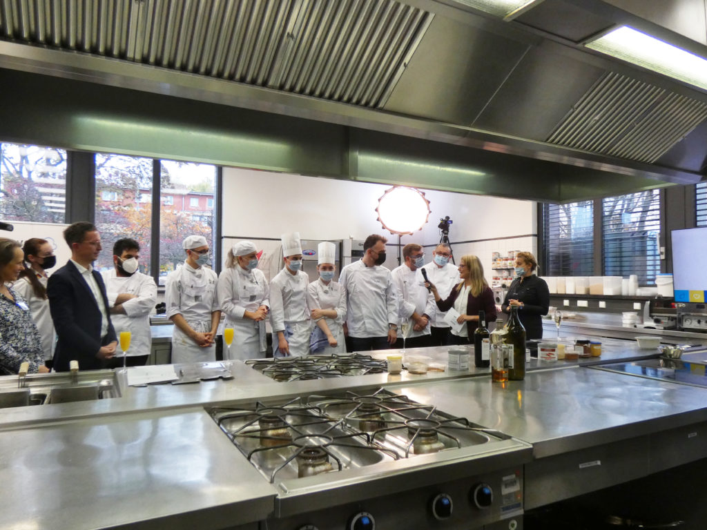 Der erste Tag stand im Zeichen von Workshops und Pitches. In den Workshops erhielten die Azubis Einblicke in die Videos ihrer Konkurrent:innen, lernten die Küchen Deutschlands und Israels besser kennen und sprachen über zukunftsrelevante Foodtech-Themen sowie über Nachhaltigkeit. In den Pausen wurde dann „gepitched“ – das heißt, die Teams stellten der Jury ihre Rezeptideen für das Final-Menü vor. Die besten Teams pro Land kochten dann am zweiten Tag gegeneinander um den Sieg. Auf deutscher Seite war dies neben den Kieler Sprotten auch das bayrische Azubi-Duo „Oachkatzlschwoaf“. Um zu gewinnen mussten die Teams an beiden Tagen eine hochkarätig besetzte Jury überzeugen. In Deutschland waren das unter anderem VKD-Präsident Daniel Schade, die VKD-Mitglieder Julia Komp, Spitzenköchin und Köchin des Jahres 2020, Elisabeth Albrecht, Trainerin der deutschen Köchenationalmannschaft und Euro-Toques-Vizepräsident Michael Haupt. Außerdem dabei waren die Berliner Sterneköche René Frank und Gal Ben Moshe, Frithjof Männel, Unterabteilungsleiter im BMBF, Hila Engelhard, Abteilungsleiterin in der israelischen Botschaft in Deutschland, sowie BIBB-Forschungsdirektor Prof. Dr. Hubert Ertl.