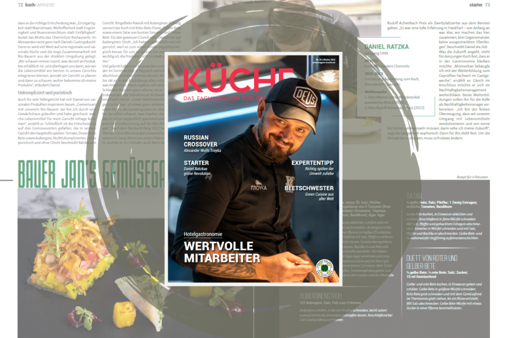 Ebenfalls im neuen Heft: ein Besuch bei Sternekoch Alexander Wulf, der im Troyka russische Küche auf den Teller bringt und sich politisch klar positioniert. Außerdem: VKD-Mitglied Daniel Ratzka im Porträt und ein Blick in die Krankenhausküche von VKD-Mitglied Udo Herberg.