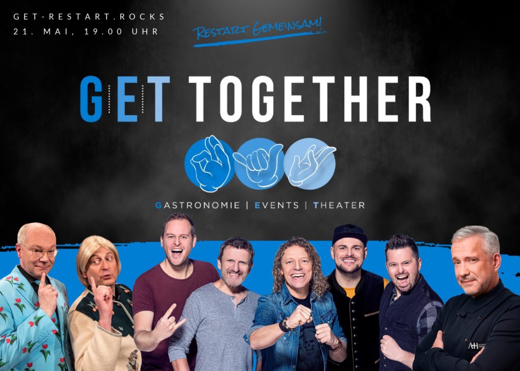 Klangvoll, komödiantisch, kulinarisch: Mit „G.E.T. – Together“ schließen sich drei Branchen zu einer digitalen Mutmacher-Party zusammen, die am 21. Mai um 19 Uhr via Livestream stattfindet. G.E.T. steht dabei für Gastronomie, Events und Theater. Unter dem Motto „Restart gemeinsam“ richtet sich die Veranstaltung an alle Arbeitgeber:innen und Arbeitnehmer:innen der drei Branchen, aber auch deren Gäste. Das Ziel: Mut machen, Zuversicht schenken und das Schönste – auch Kinder unterstützen. Denn der Reinerlös des Events geht an „Ein Herz für Kinder“.