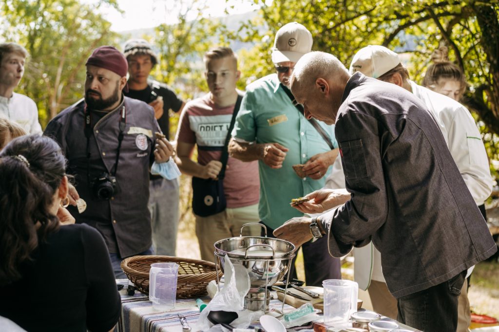 Unter dem Motto „Cooking for Hessen“ hat Ende Juli das Jugendcamp des VKD-Landesverbands Hessen stattgefunden. Diesmal war der Zweigverein der Köche Gießen-Wetzlar e. V. Gastgeber. Für die elf teilnehmenden Azubis aus ganz Hessen hatten Landesverband und Zweigverein ein buntes dreitägiges Programm zusammengestellt. Dazu gehörte zum Beispiel der Besuch einer Käserei, in der die angehenden Köchinnen und Köche jede-/r selbst einen Ziegenkäse herstellen konnten. Außerdem haben die Hess:innen eine Fischzucht in Wetterfeld besichtigt inklusive ausgedehnter Führung und Probieren der Fische. „Der Besuch dieser beiden regionalen Betriebe, die im Einklang mit der Natur arbeiten, hat besonderen Eindruck bei den Azubis hinterlassen“, berichtet Thomas Kehr, Vorstandsmitglied im Landesverband Hessen und erster Vorsitzender im Gießener Verein. „Die Käsestation war im Feld am Waldrand aufgebaut und auf dem Gelände der Fischerei gibt es seltene Libellensorten, Bieber und Fischotter. Es war für alle toll zu sehen, dass Nachhaltigkeit hier großgeschrieben wird.“ Regionalität und Nachhaltigkeit standen auch bei dem Besuch des Gießener Wochenmarkts im Fokus, wo die Teilnehmenden die Zutaten für ein Menü einkauften.