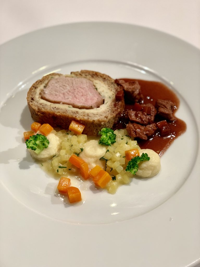 Galantine von der Wachtel, Poulardenbällchen, Gurkensalat und Blattsalate. Ochsenschwanz-Schaumsuppe mit Ravioli und Gemüserauten. Gebratener Kalbrücken unter einer Champignonkruste mit Thymianjus. Oder doch lieber Honig-Joghurt-Schnitte mit Birnenkompott und Basilikumeis? Dieser Querschnitt gibt einen kleinen Einblick davon, wie anspruchsvoll die Azubi-Menüs der diesjährigen Deutschen Jugendmeisterschaften waren.