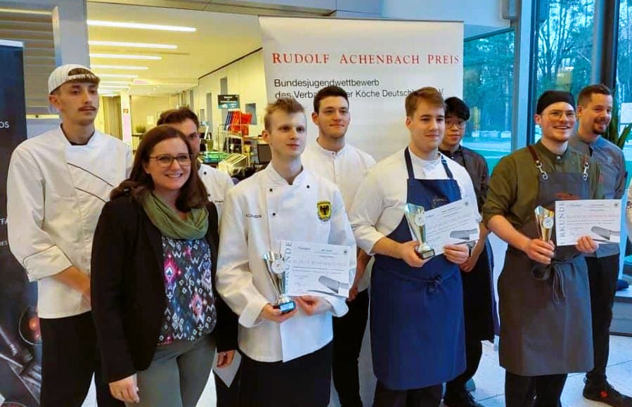 Kochazubis aus acht VKD-Zweigvereinen trafen sich Mitte März zum Kochwettbewerb im Deutschen Zentrum für Luft- und Raumfahrt in Köln. Beim Vorentscheid des VKD-Landesverbands NRW ging es hier um den Einzug ins Finale des Rudolf Achenbach Preis 2023, Bundesjugendwettbewerb des VKD. Am meisten überzeugte die Jury dabei Mattes Klostermann vom Hotel Kaiserhof in Münster. Er tritt am 7./8. Mai gegen die Finalist:innen aus den anderen Landesverbänden an. Platz zwei im Vorentscheid erkochte sich Mark Chudzik vom „Das Hoesch Restaurant“ in Dortmund, Justus Kendzorra aus dem Gasthaus Spieker in Hövelhof-Riege erreichte den dritten Platz.