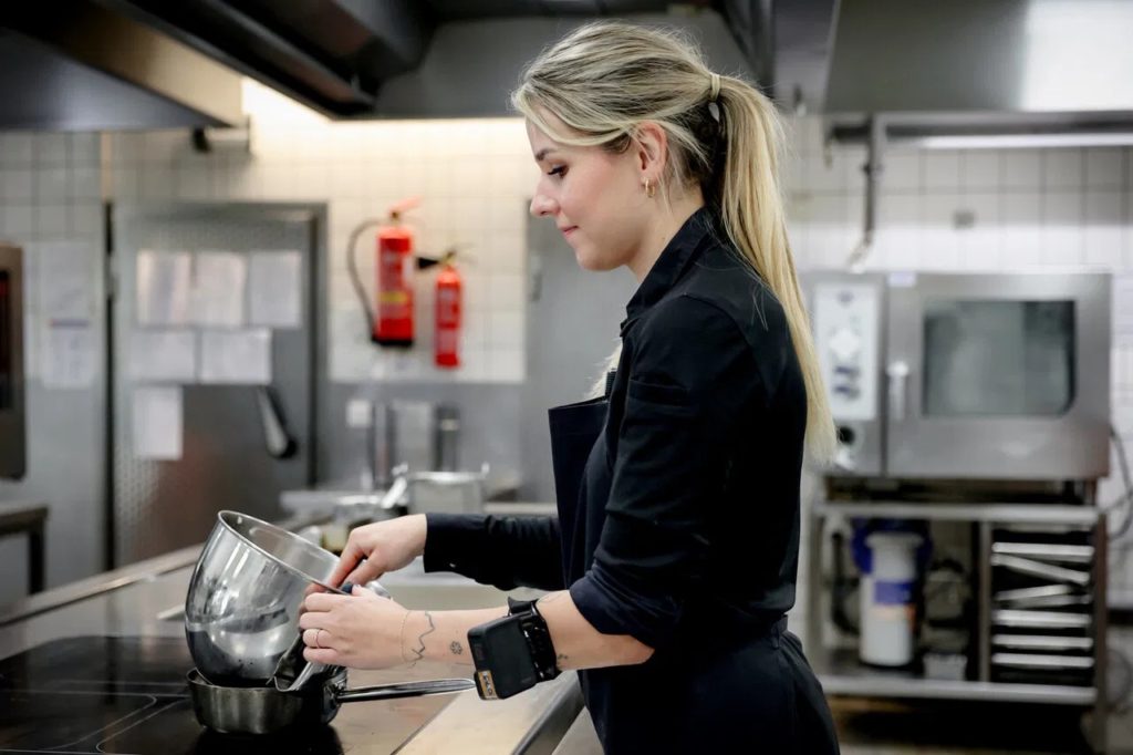 Für Sarah Klüh war früh klar, wohin ihre berufliche Reise geht. „Meine Oma war Köchin, mein Opa Bäcker – ich habe schon als Kind mitgebacken und zu Hause mitgekocht“, erzählt die 30-Jährige. Die Entscheidung, selbst Köchin zu werden, fiel bereits in der fünften Klasse. Die unregelmäßigen Arbeitszeiten haben sie nie abgeschreckt. „Ich war es gewohnt, dass an Feiertagen oder Wochenenden jemand fehlt – meine Eltern arbeiten im Krankenhaus und bei der Feuerwehr. Nine-to-Five gab es bei uns nie.“ Nach Schulpraktika in verschiedenen Küchen begann sie 2011 ihre Ausbildung im Goldenen Karpfen in Fulda – eine bewusste Entscheidung. „Ich komme aus der Rhön, und wenn ich hier in der Region Köchin lernen will, dann nur im Karpfen. Der hatte schon damals einen richtig guten Ruf.“
