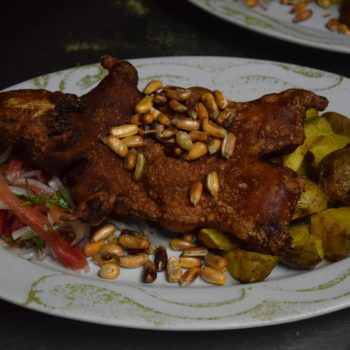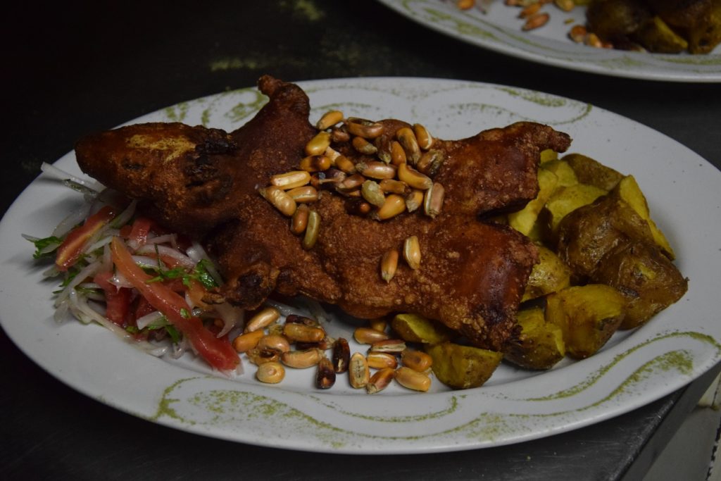 Am Ende noch ein paar Worte zur peruanische Küche, die wie schon Bolivien durch ihre verschiedenen Klimazonen und somit auch durch abwechslungsreiche Produkte besticht. Kartoffeln, Mais, Reis, Chili, Bananen, Kakao, exotische Früchte und Meeresgetier sind die Hauptzutaten der Gerichte. An Fleischgerichten muss man unbedingt die Antichuchos de Corazón (Rinderherz am Spieß), Lomo Saltado (Nationalgericht), Alpaka-Steak und das gebackene Meerschweinchen Cuy Chactado probieren. Die beiden Kartoffelgerichte Papa a la Huancaína und Causa Limeña sind ebenfalls empfehlenswerte vegetarische Gerichte.