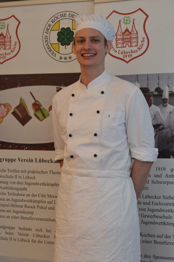 Die Jury bestand nur aus ehemaligen Wettbewerbsköchinnen und -köchen unter 30 Jahren. „Wir möchten unseren Nachwuchsjuror:innen eine Bühne geben“, sagt Holger Mootz, Jugendwart des Landesverbands. „Felix Lestrat, Nik Jensen, beide aus Lübeck, und Annerose Lillge aus Hamburg haben diesen Wettbewerb bewertet und später das Feedback-Gespräch mit den teilnehmenden Azubis geführt.“