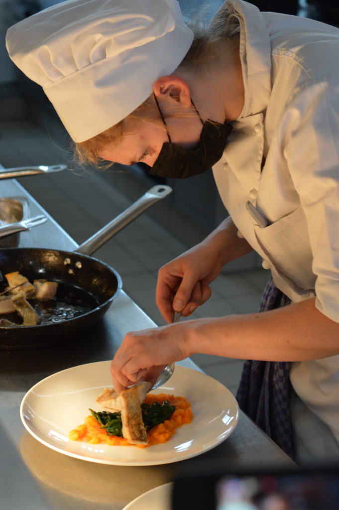 Besondere Umstände erfordern kreative Konzepte: Der VKD-Landesverband Nord war einer von einer Hand voll Landesverbänden, die ihren traditionellen Azubiwettbewerb den Gegebenheiten durch Corona angepasst und sich ein neues, umsetzbares Konzept ausgedacht hatten. Im Frühjahr konnten sich angehende Köchinnen und Köche online mit einem Tellergericht zum Thema nachhaltige Verarbeitung eines Zanders bewerben. Eine Jury wählte aus den elf Einsendungen die besten für eine Endrunde in Präsenz aus. Insgesamt fünf Teilnehmer:innen sind dann Mitte September in der Gewerbeschule Lübeck beim Finale an den Start gegangen und haben ihr online eingereichtes Gericht jeweils innerhalb von zweieinhalb Stunden für vier Personen gekocht.