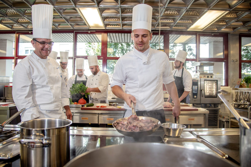 „Ob aus der Landhausküche oder vom Sternerestaurant, in unseren Küchenmeister-Lehrgängen geht es darum, von dem breiten Wissen anderer zu lernen und sich bestmöglich weiterzuentwickeln“, sagt Uwe Kälberer, der als Technischer Lehrer die Küchenmeister-Fortbildung an der Hotelfachschule Heidelberg verantwortet. Außerdem ist er selbst einer von insgesamt mehr als 10.000 Absolvent:innen, die bislang in Heidelberg einen Abschluss gemacht haben. Wer sich als Köchin oder Koch mit gastronomischer Weiterbildung in Deutschland beschäftigt, stößt schnell auf die älteste Hotelfachschule des Landes. Für Küchenprofis ist vor allem der Bildungsgang Staatlich geprüfte/r Gastronom/in und Meister/in im Gastgewerbe (IHK) interessant. Innerhalb eines Jahres wird hier im Vollzeitunterricht das meisterliche Rüstzeug vermittelt.