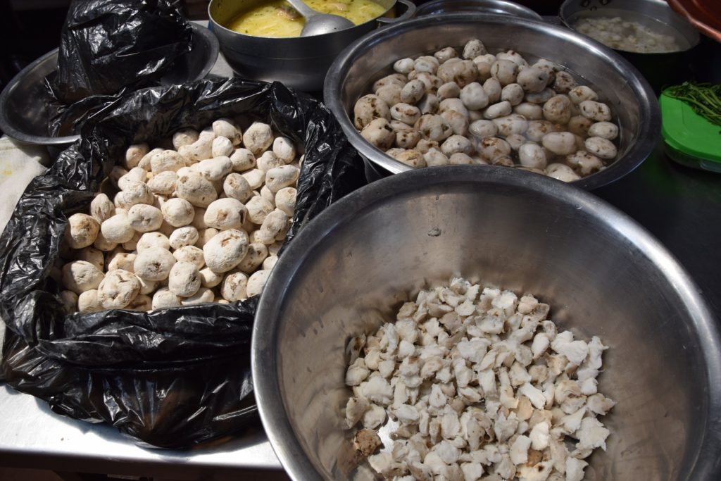 Ich habe mein Praktikum in Santa Cruz de la Sierra absolviert und daher einen größeren Einblick in die Tieflandküche bekommen. Im Restaurant El Aljibe durfte ich zwei Wochen lang mitkochen und dem Team meine endlosen Fragen stellen. Das Restaurant war rustikal eingerichtet und glich einem kleinen Museum mit einer Zisterne im offenen Innenhof. Die Küche war eine zusammengewürfelte Konstellation und hatte einen Gasherd sowie fünf offene Gasflammen, auf denen alles vorbereitet und gekocht wurde. Sie war zwar überdacht, aber an den Seiten oben offen, sodass hauptsächlich die Hitze und selten ein angenehmes Lüftchen zu uns durchdrangen.