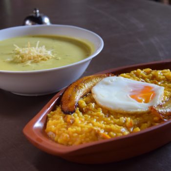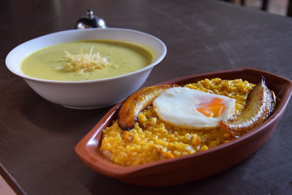 Die beiden Inhaber haben vor Jahren angefangen, alte bolivianische Rezepte von ihren Omas auszugraben und wieder zu beleben. Majao de Charque ist das meistbestellte Gericht der Karte. Es besteht aus Reis, Trockenfleisch, frittierten Bananen und einem Spiegelei. Die orangene Färbung des Reises entsteht durch die Verwendung der Samen des Annattostrauchs (Achiote/Uruku). Er enthält einen natürlichen Farbstoff und wird in vielen Ländern auch als Gewürz genutzt. Wer etwas Kurioses im El Aljibe probieren möchte, der muss auf der Karte Ausschau nach Lagarto (Echse) halten. Das weiße fischähnliche Fleisch wird paniert, frittiert und mit einem leicht scharfen Dip serviert.
