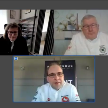 Am dritten Event-Tag ging Block Süd an den Start. Axel Kammerl sprach im Meeting-Raum des Landesverband Bayern darüber, wie Unternehmenskonzepte für eine Küche der Zukunft aussehen könnten und Konrad Hurter, Landesverbandsvorsitzender Baden-Württemberg, erklärte im Talk „Perspektiven für junge Kochtalente“, warum die Kochausbildung auch in Zukunft noch ein guter Weg für potenzielle Azubis ist. Auch die Talentschmiede, das Jugendcamp des Landesverbands, stellte er vor – mit inhaltlicher Unterstützung durch Kollege Thomas Ballmann über den Chat. Den Abschluss bildete Berlin-Brandenburg. Hier diskutierte der Vorsitzende Andreas Truglia mit VKD-Ausbildungsexperte Heiko Becker über die Novellierung der Kochausbildung.