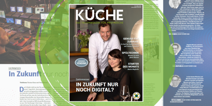 Ist die Zukunft der Gastromessen digital? In der neuen Ausgabe von KÜCHE wird ein genauer Blick auf die neuen elektronischen Formate geworfen. Außerdem: Wie es ist, in 187 Metern Höhe zu kochen und wie Team Germany mit den VKD-Jugendwarten zusammenarbeitet.