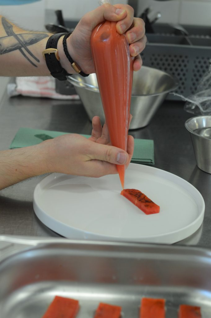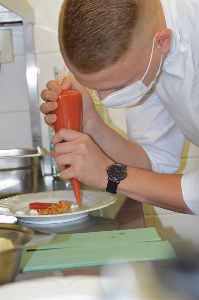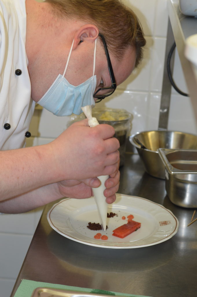 Beim VKD-Landesverband Nord ist im Oktober eine Seminarreihe für interessierte Jungköchinnen und -köche gestartet. Den Auftakt machte eine Veranstaltung zur molekularen Küche mit Referent Felix Lestrat, ehemaliges Mitglied der Jugend- und Köchenationalmannschaft. Auszubildende aus Bremen, Kiel und Lübeck waren der Einladung gefolgt. In der Gewerbeschule 2 in Lübeck bereitete Felix Lestrat gemeinsam mit den Teilnehmenden ein Dessert aus Melone, Olivenöl und Schokolade zu, bei dem sie selbst Hand anlegen durften. Das Seminar war erst der Anfang. „Wir planen drei bis vier Seminare im Jahr mit unterschiedlichen Dozenten aus der bepunkteten oder Sternegastronomie“, erklärt Holger Mootz, Jugendwart des Landesverbands. „Die Kosten hierfür übernehmen wir. Voraussetzung ist nur, dass die Teilnehmenden Mitglied im VKD sind.“ Geplante Themen für 2022 sind unter anderem Fischverarbeitung und neue Garverfahren, Sous-vide-Garen und regionales Kochen mit asiatischen Einflüssen und das Thema Zero–Waste. Anfragen zur Anmeldung können Interessierte per Mail an Holger Mootz richten an jugendwart-lvnord@web.de